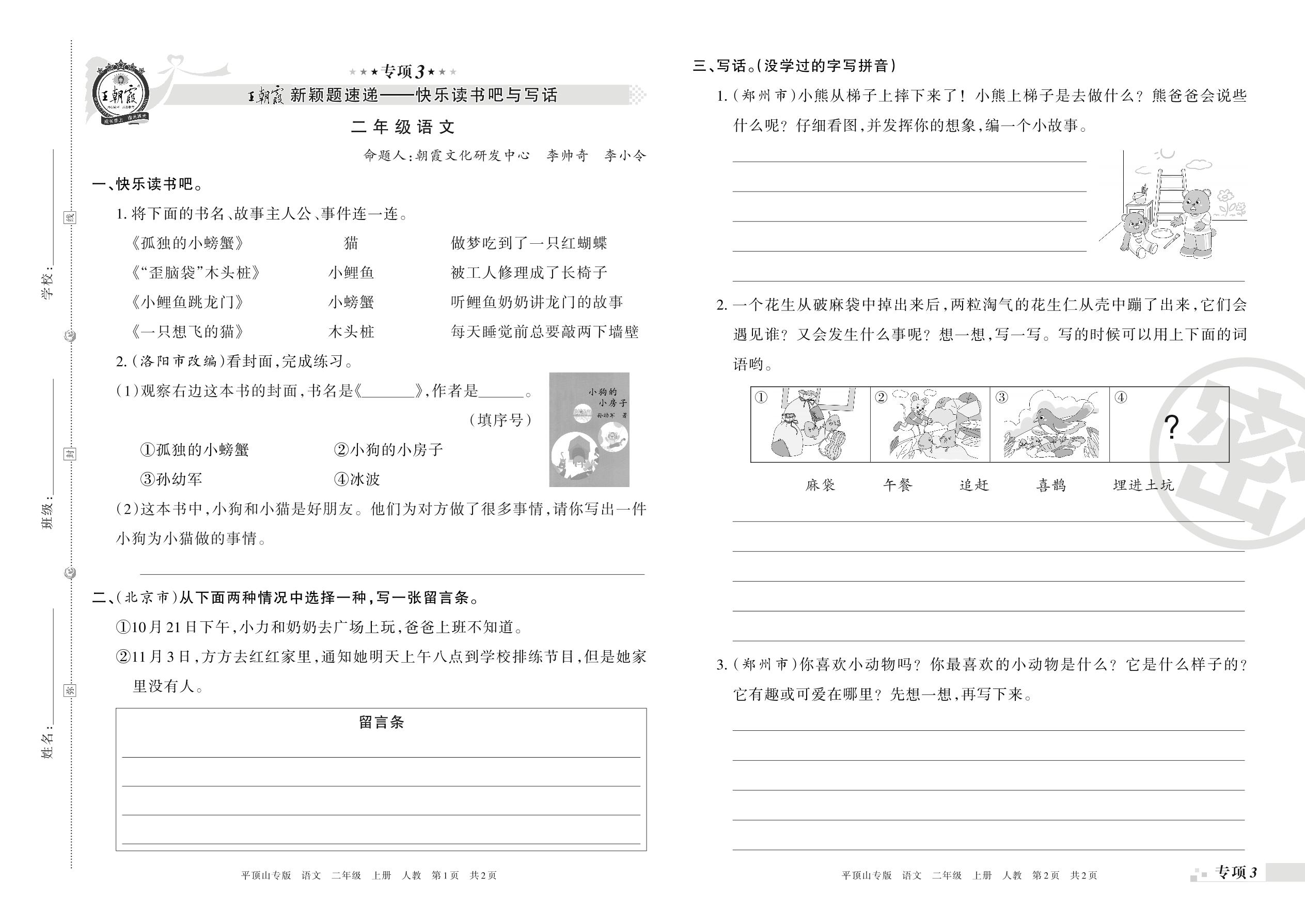 王朝霞期末专项卷——新颖题速递:快乐读书吧与写话二年级上册语文(人教版)_R211224100722586【3】