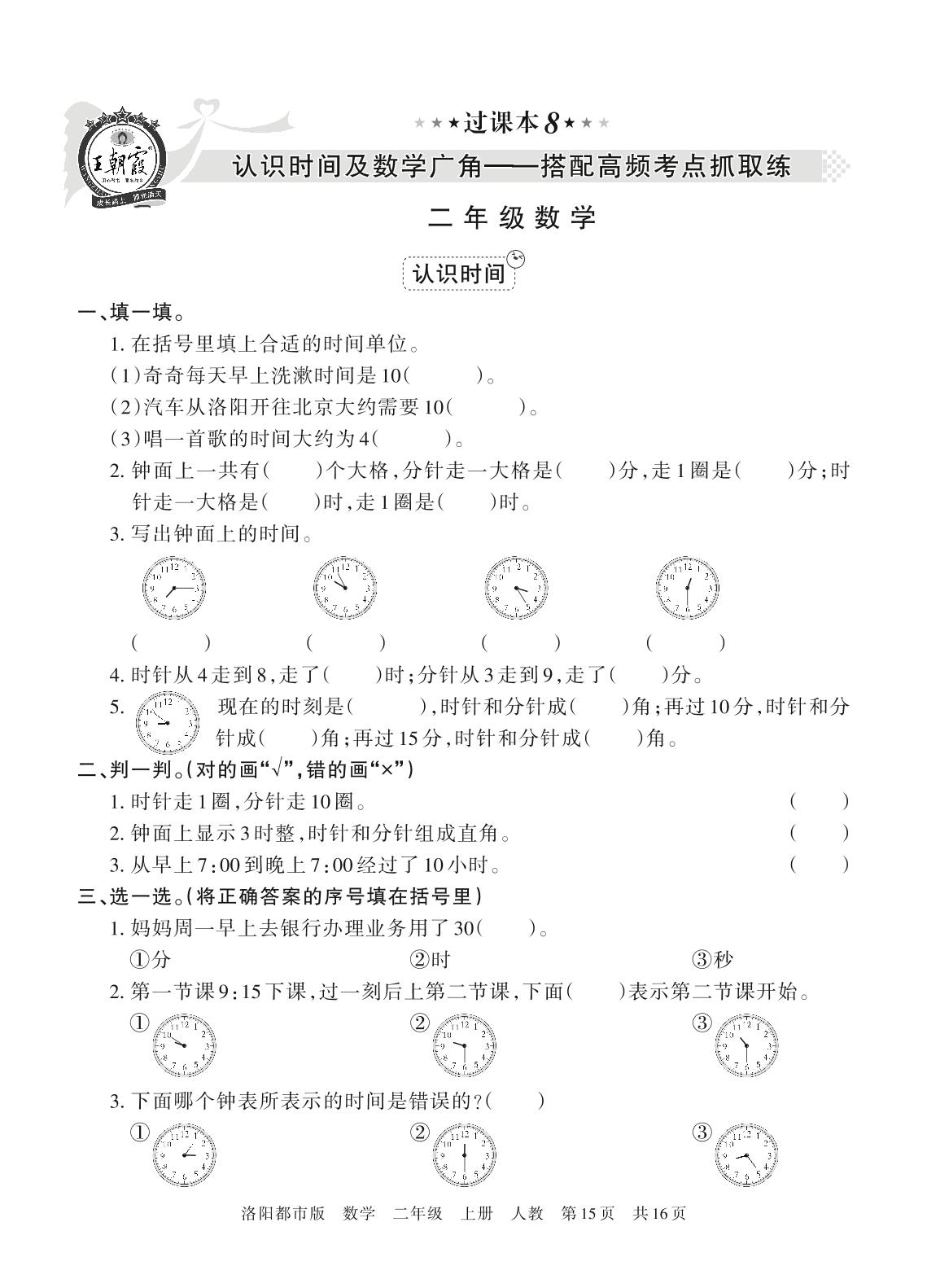 王朝霞期末过课本——认识时间及数学广角:搭配高频考点抓取练二年级上册数学(人教版)_R211224100856576【8】