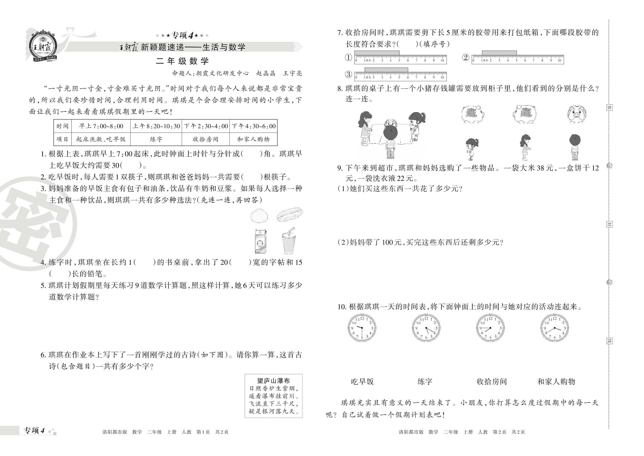 王朝霞期末专项卷——新颖题速递:生活与数学二年级上册数学(人教版)_R211224100856373【4】