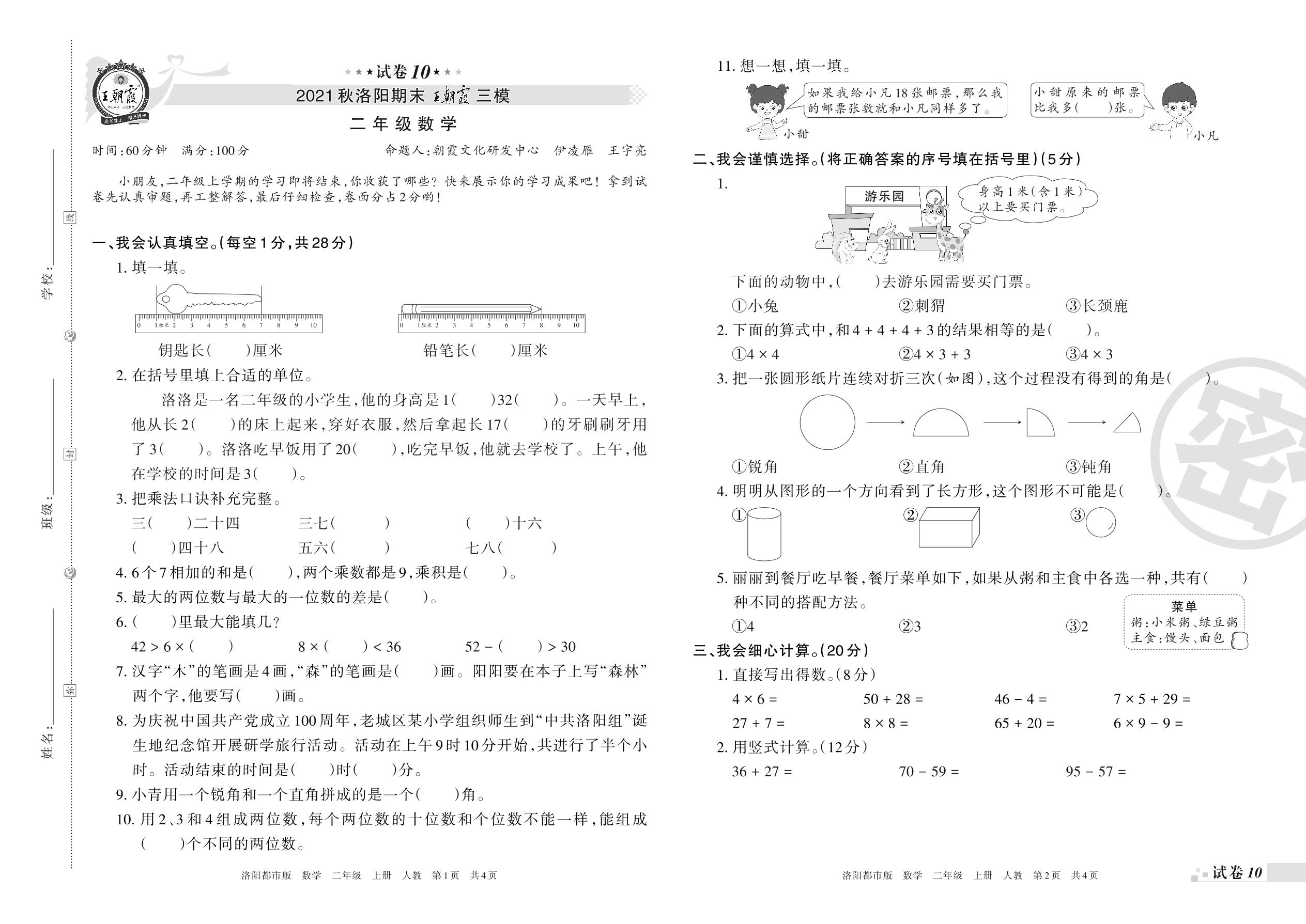 王朝霞期末模拟卷二年级上册数学(人教版)_R211224100856925【10】