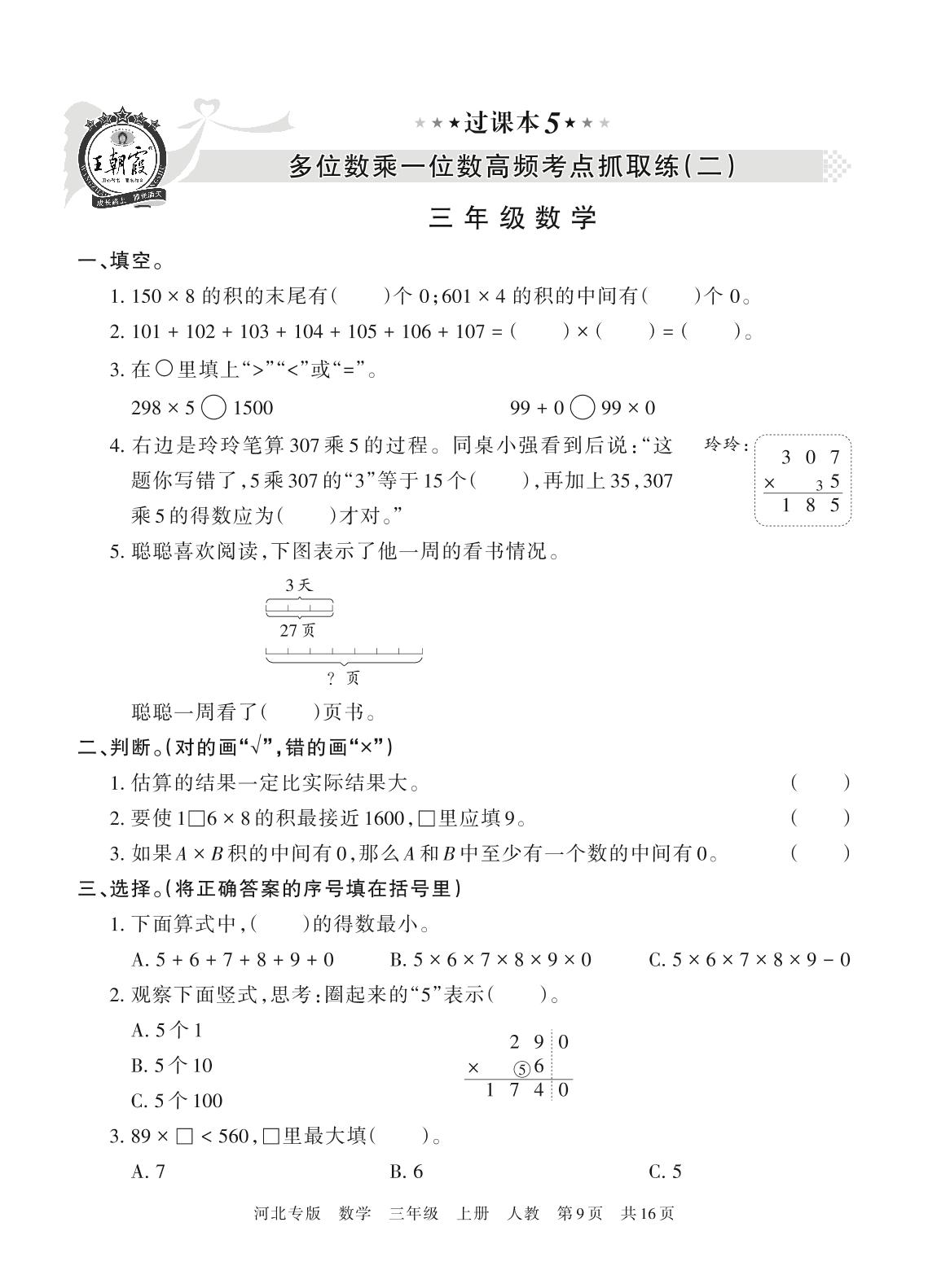 王朝霞期末过课本——多位数乘一位数高频考点抓取练(二)三年级上册数学(人教版)_R211224101303266【5】