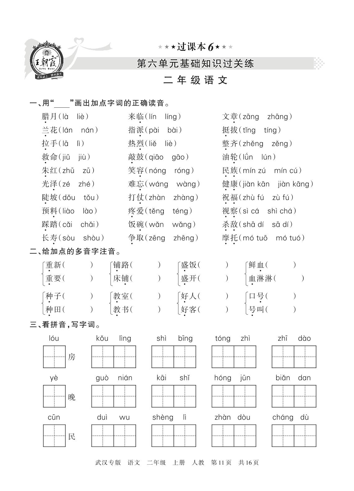 王朝霞期末过课本——第六单元基础知识过关练二年级上册语文(人教版)_R211224101348782【6】