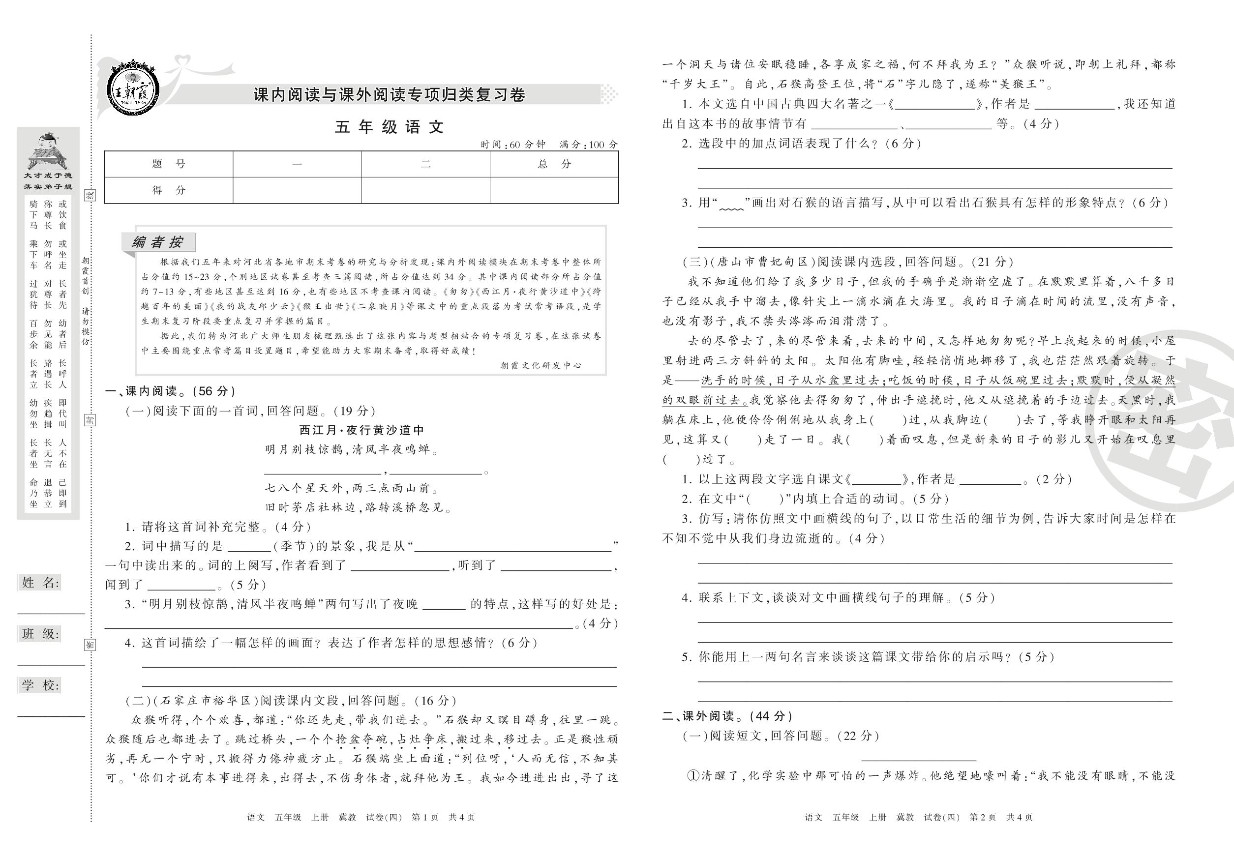 王朝霞期末专项卷五年级上册语文(冀教版)【4】