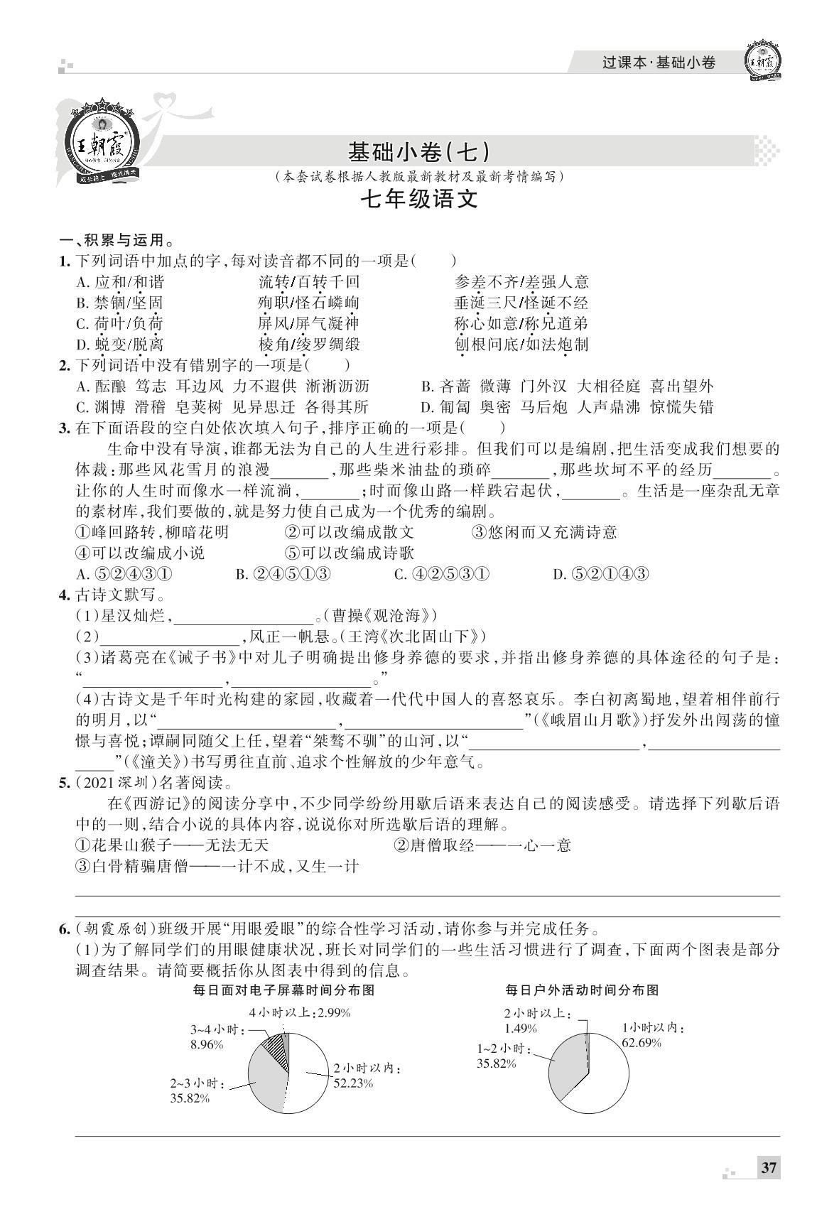 王朝霞期末过课本——基础小卷(七)七年级上册语文(人教版)_R211224101739637【13】