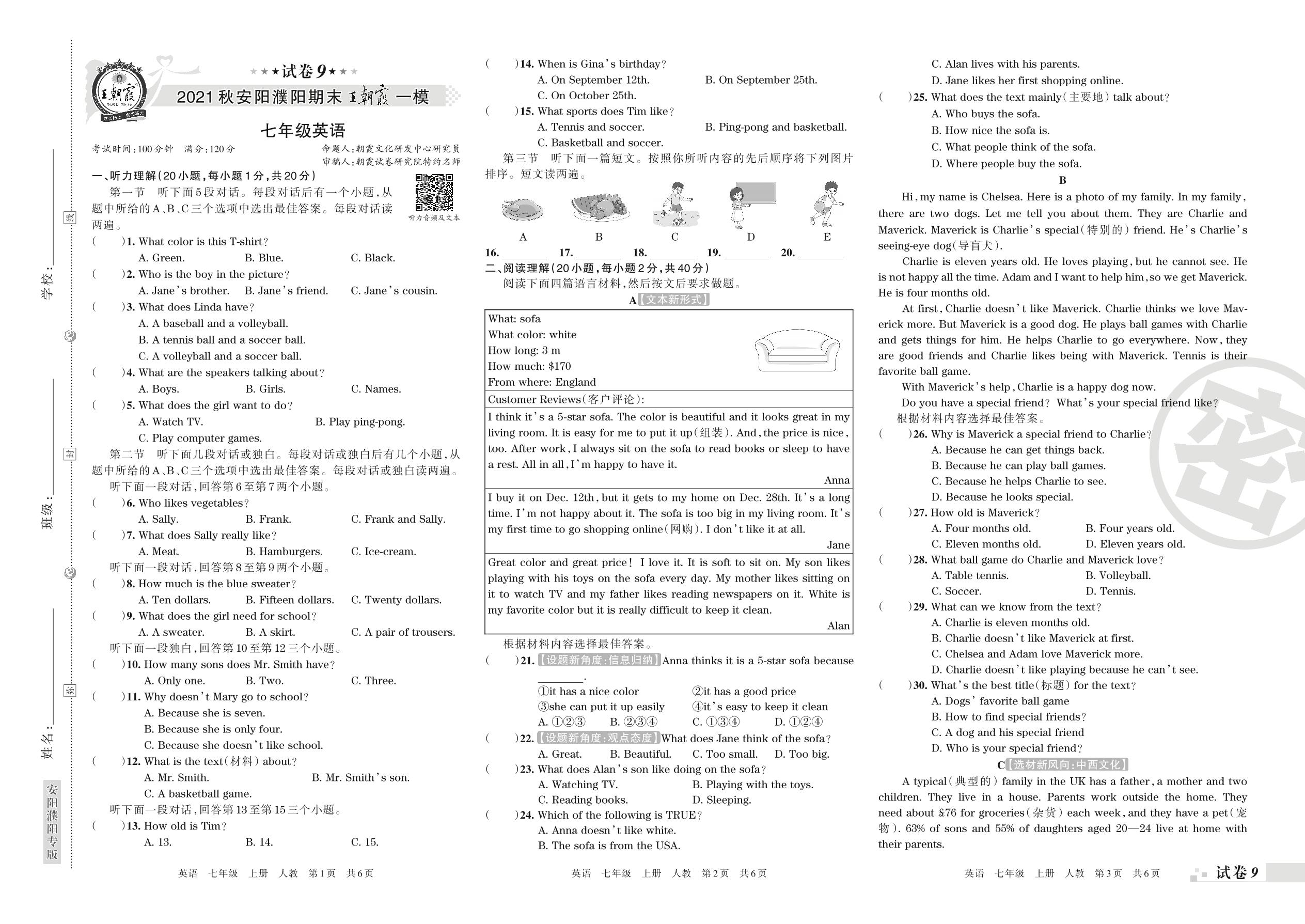 王朝霞期末模拟卷七年级上册英语(人教版)_R211224102245825【9】