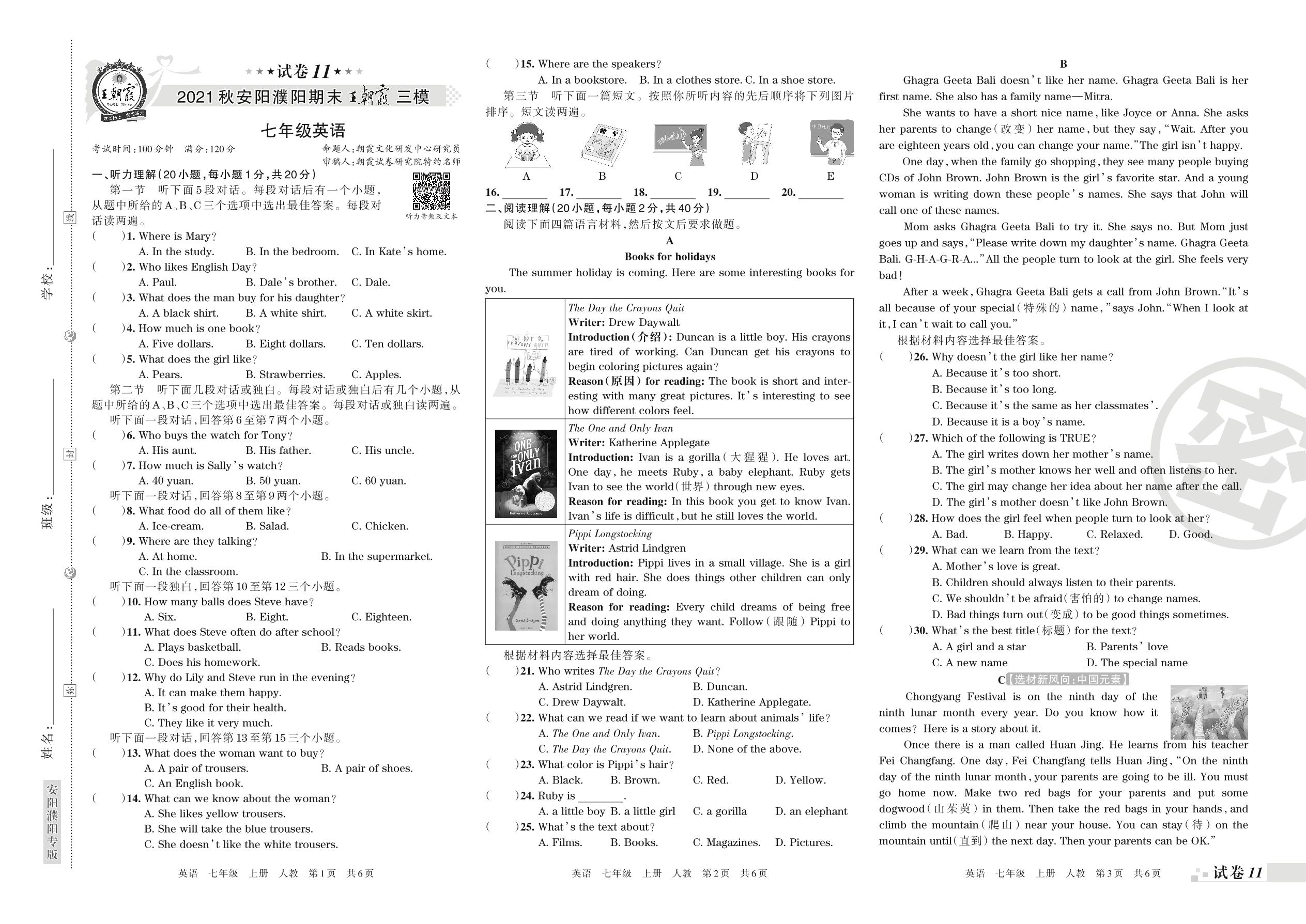 王朝霞期末模拟卷七年级上册英语(人教版)_R211224102245559【11】
