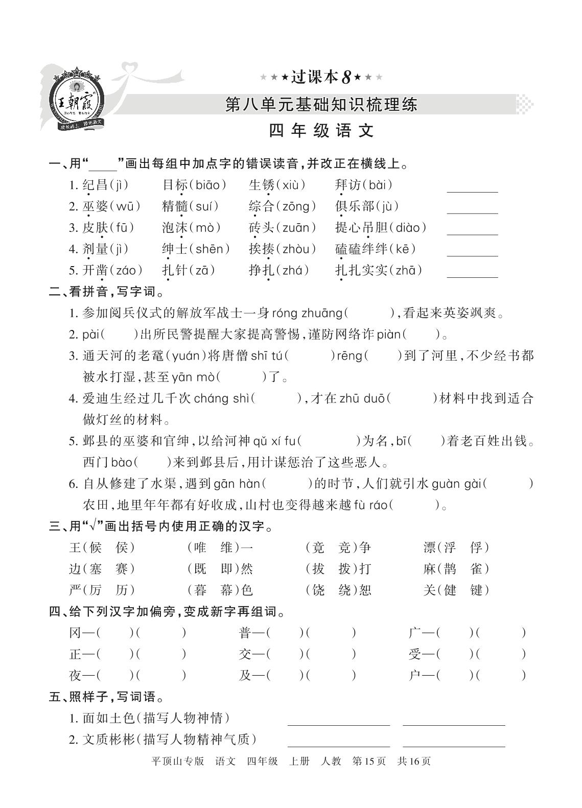 王朝霞期末过课本——第八单元基础知识梳理练四年级上册语文(人教版)_R211224102457078【8】