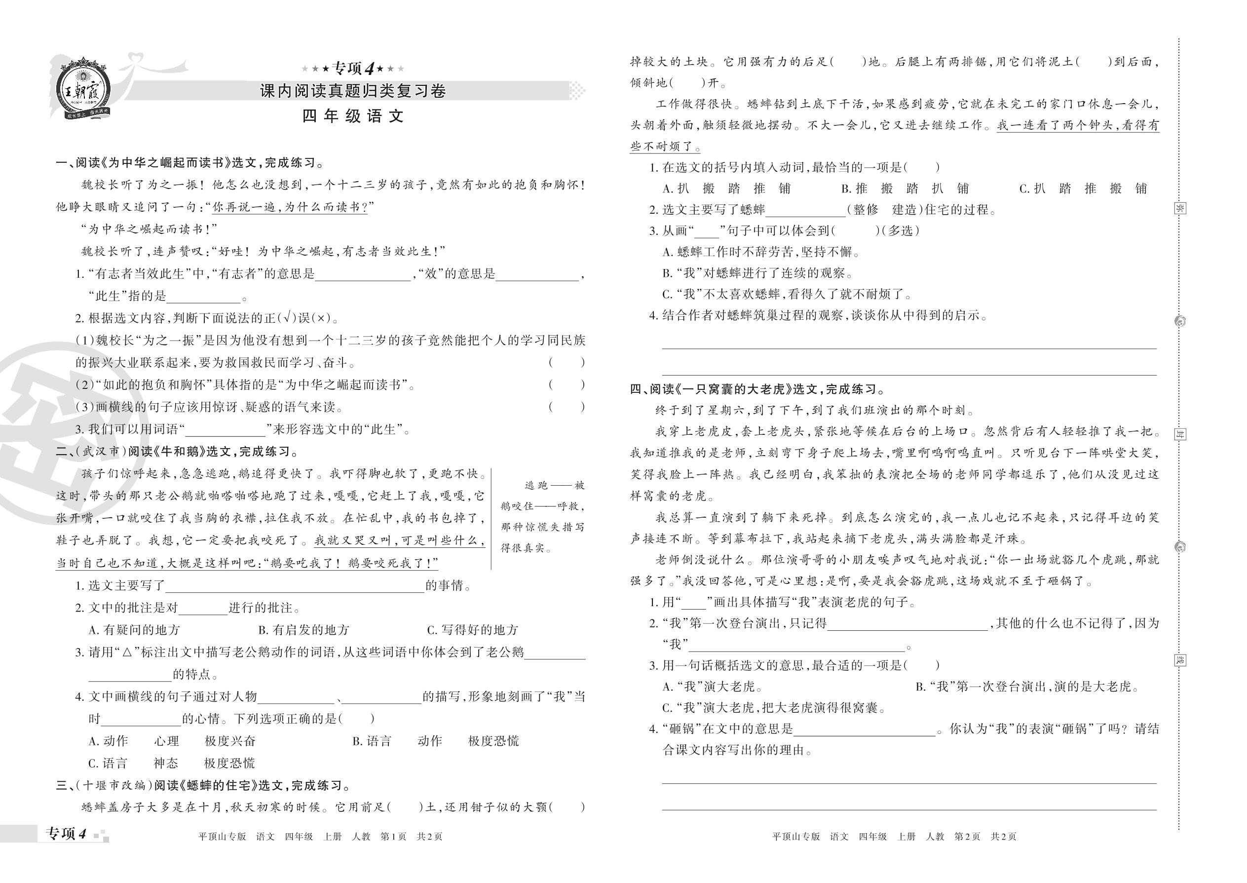 王朝霞期末专项卷——课内阅读真题归类复习卷四年级上册语文(人教版)_R211224102457190【4】