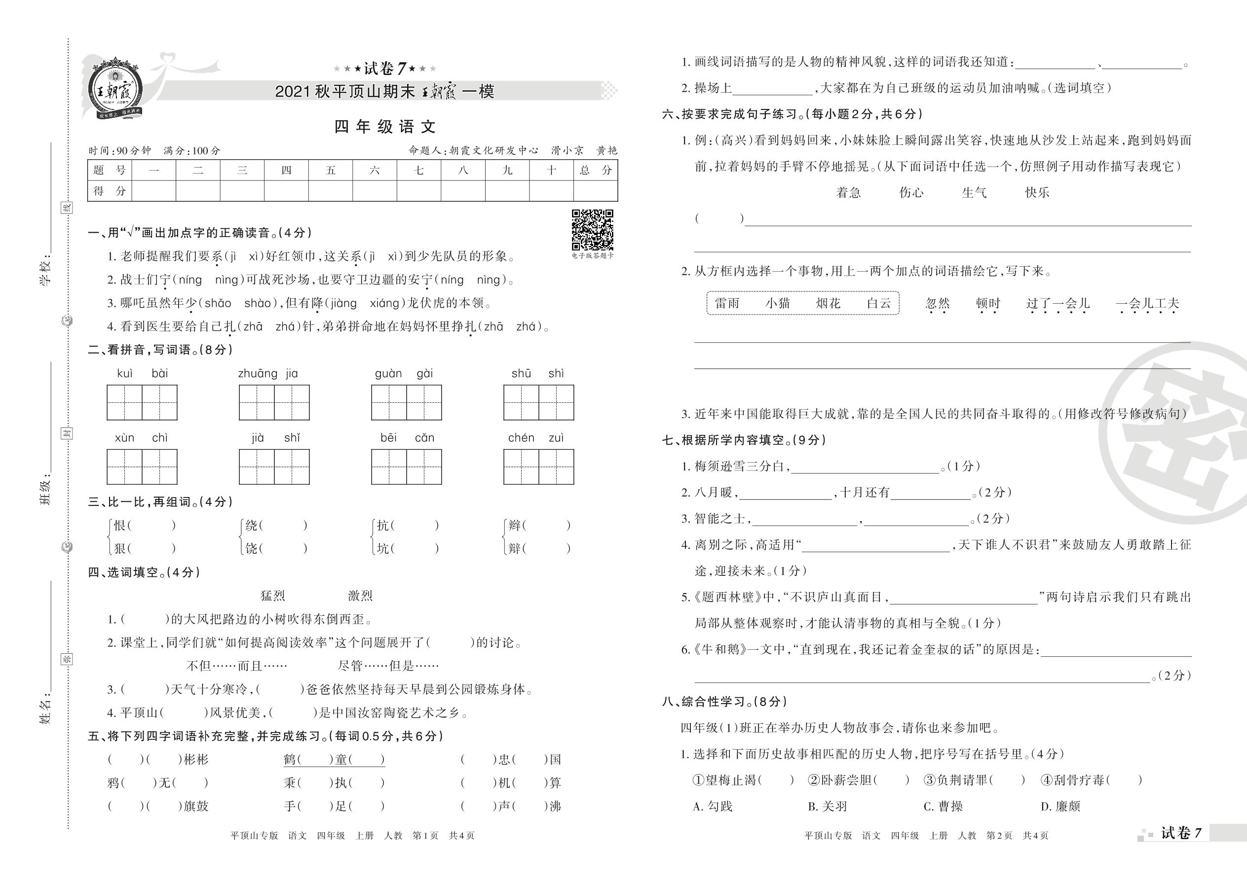 王朝霞期末模拟卷四年级上册语文(人教版)_R211224102457142【7】