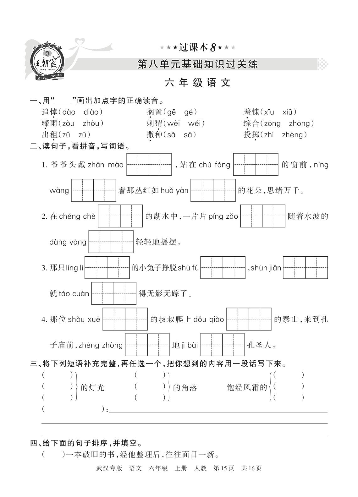 王朝霞期末过课本——第八单元基础知识过关练六年级上册语文(人教版)_R211224102625995【8】