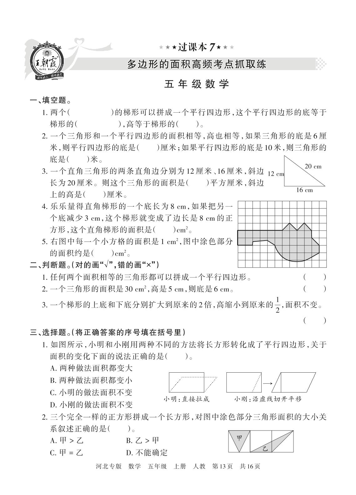 王朝霞期末过课本——多边形的面积高频考点抓取练五年级上册数学(人教版)_R211224102812402【7】