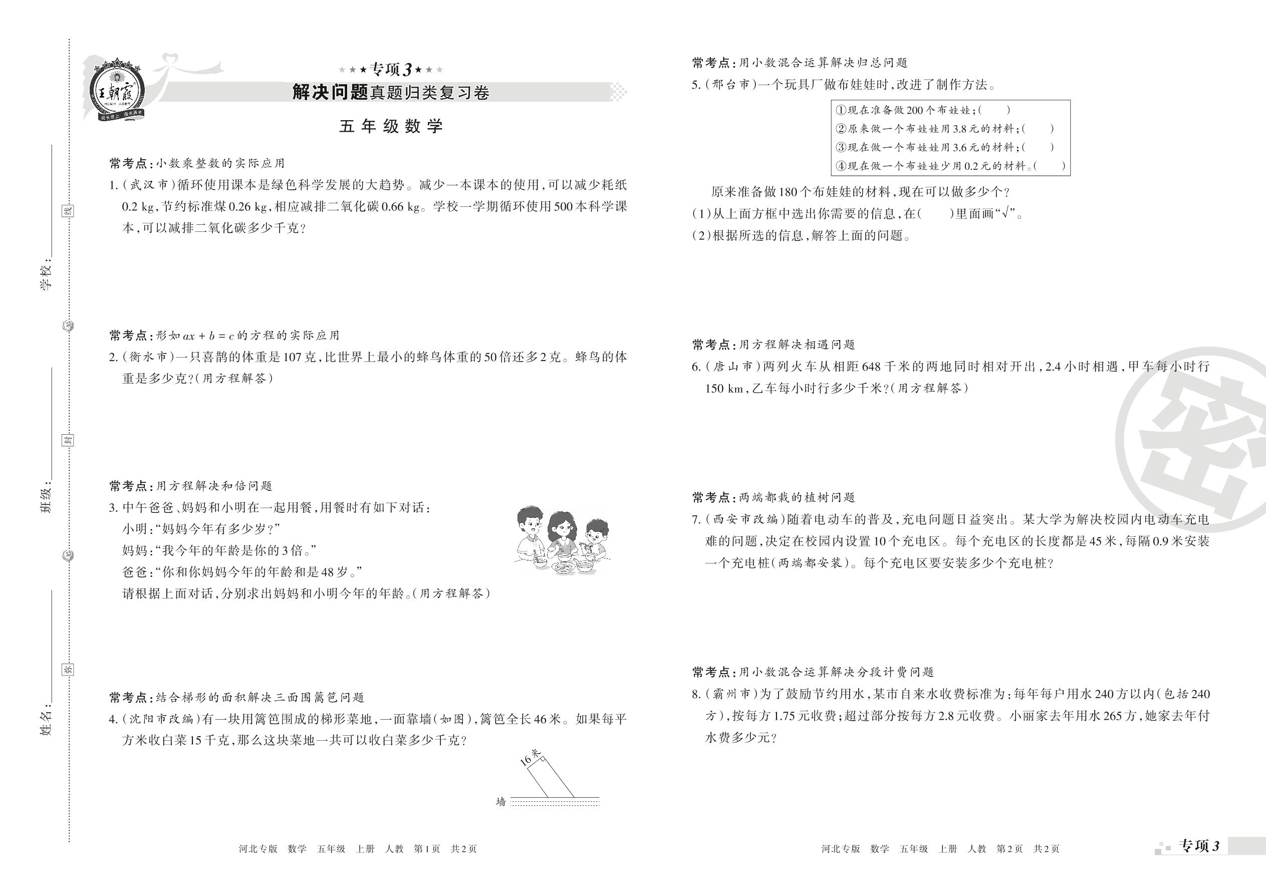 王朝霞期末专项卷——解决问题真题归类复习卷五年级上册数学(人教版)_R211224102813169【3】