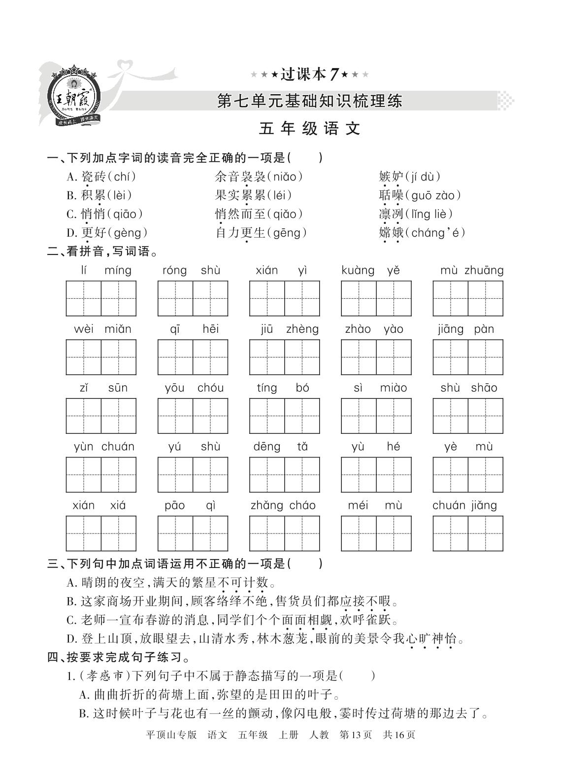 王朝霞期末过课本——第七单元基础知识梳理练五年级上册语文(人教版)_R211224102945181【7】