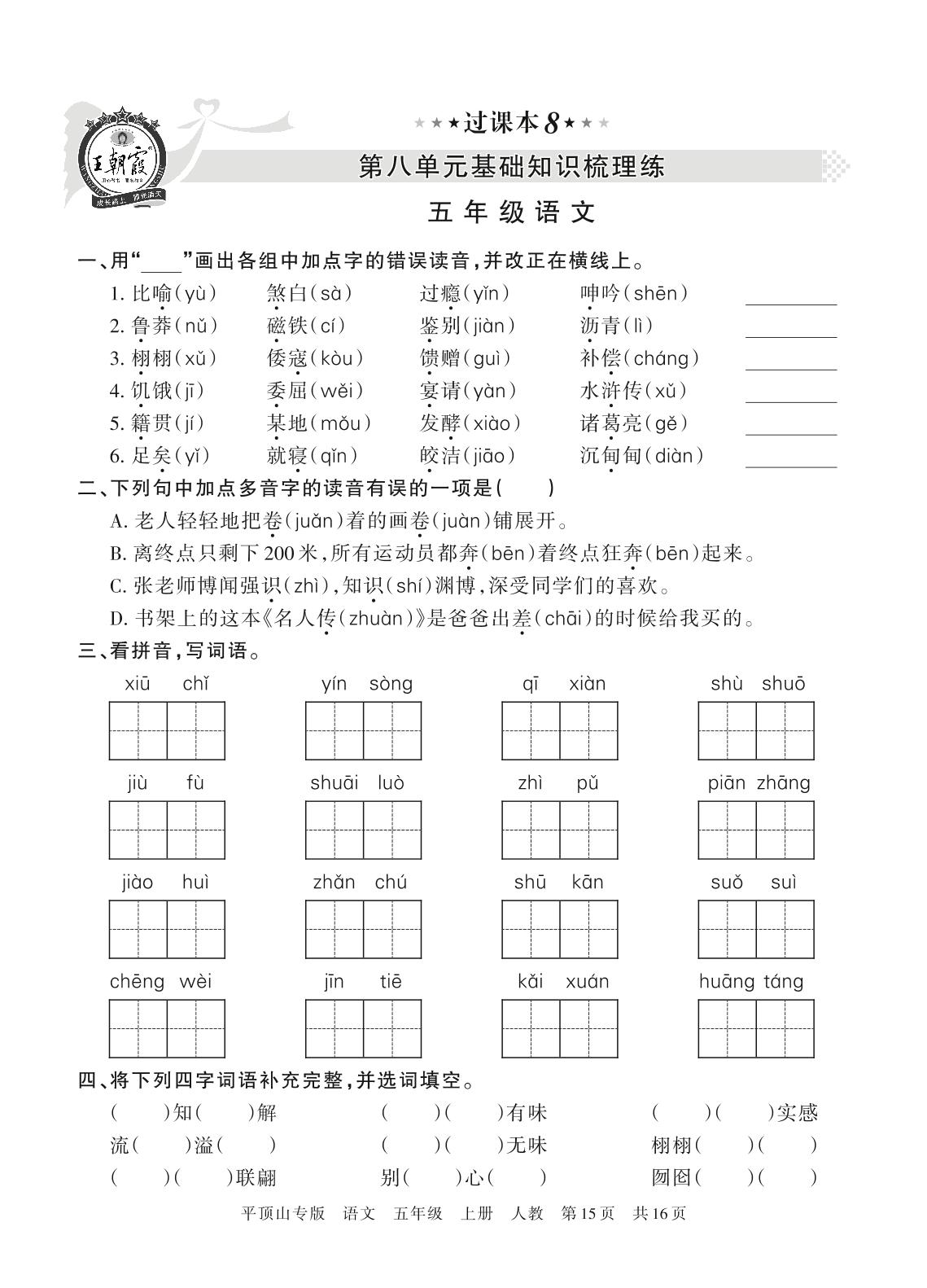 王朝霞期末过课本——第八单元基础知识梳理练五年级上册语文(人教版)_R211224102945724【8】