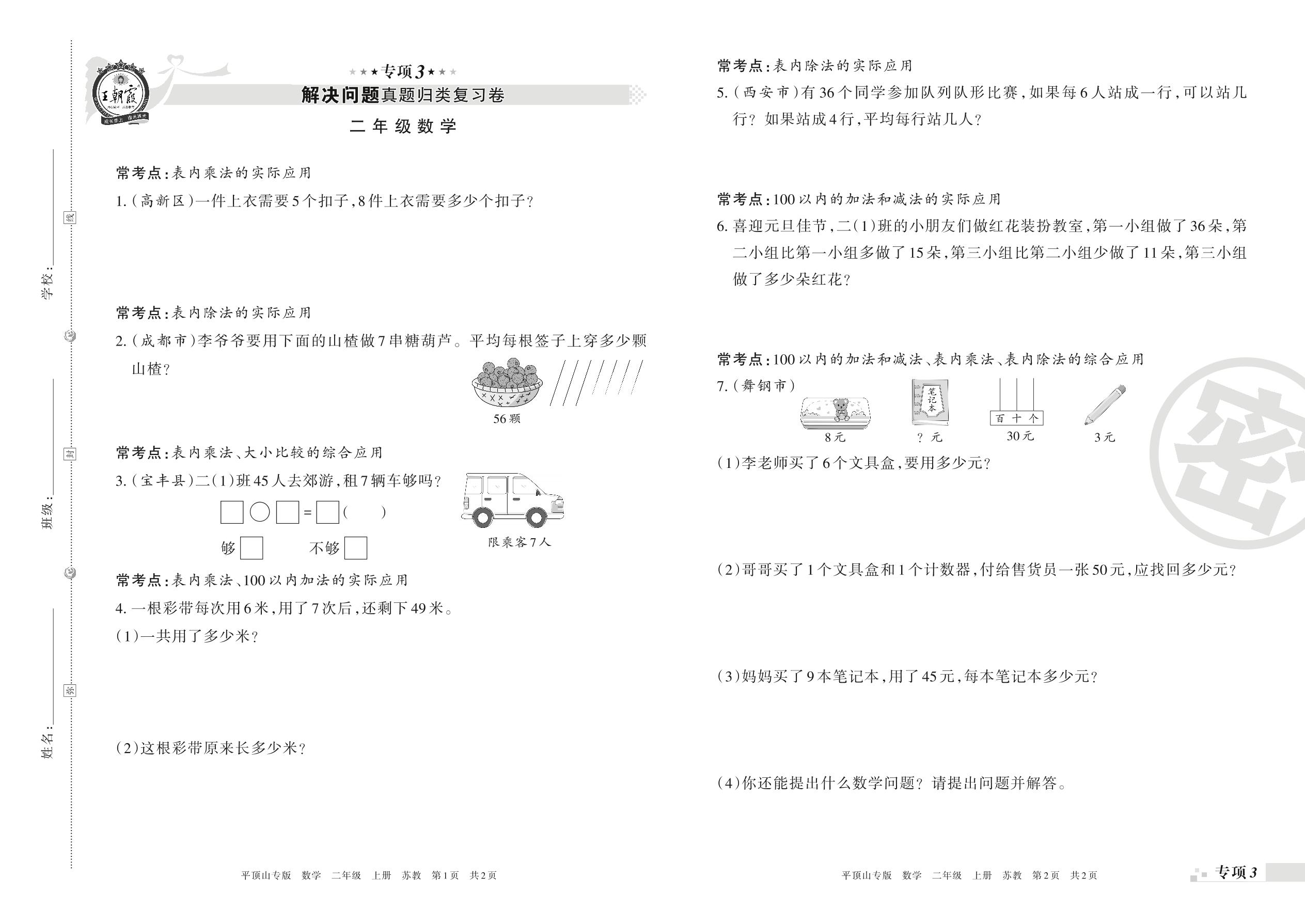 王朝霞期末专项卷——解决问题真题归类复习卷二年级上册数学(苏教版)_R211224103719897【3】