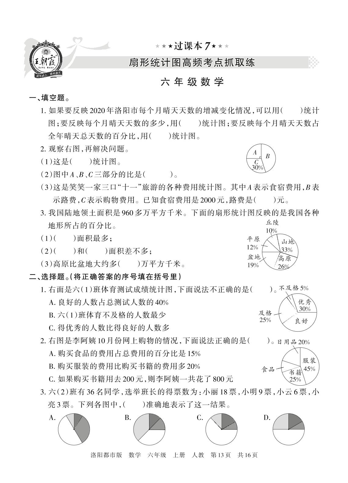王朝霞期末过课本——扇形统计图高频考点抓取练六年级上册数学(人教版)_R211224104539614【7】