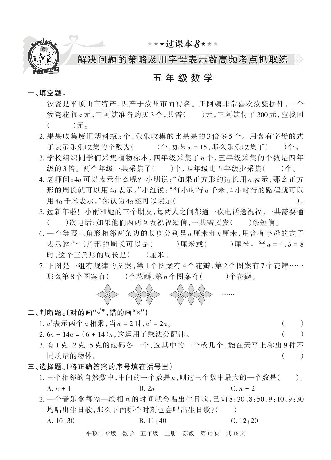 王朝霞期末过课本——解决问题的策略及用字母表示数高频考点抓取练五年级上册数学(苏教版)_R211224105230241【8】