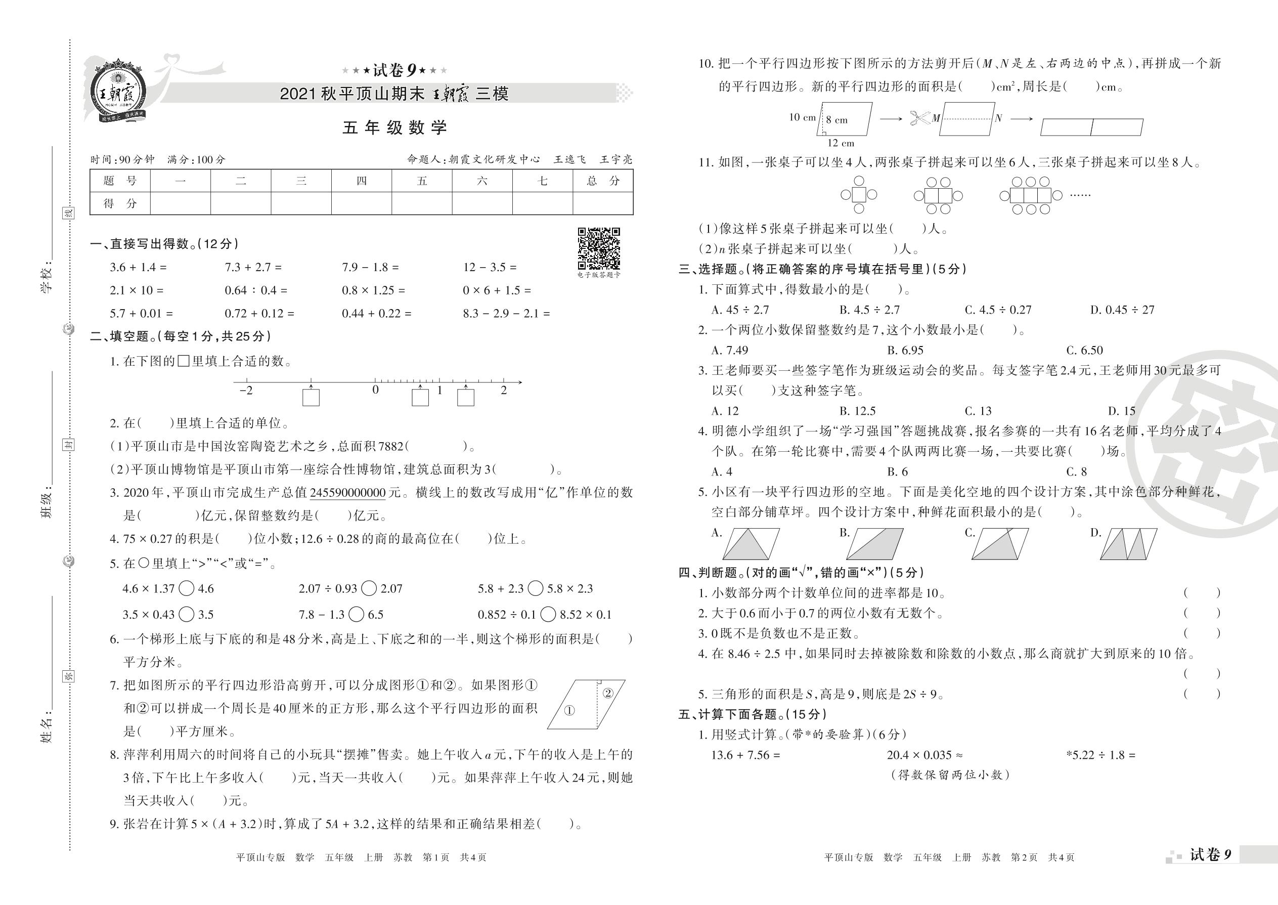 王朝霞期末模拟卷五年级上册数学(苏教版)_R211224105231617【9】