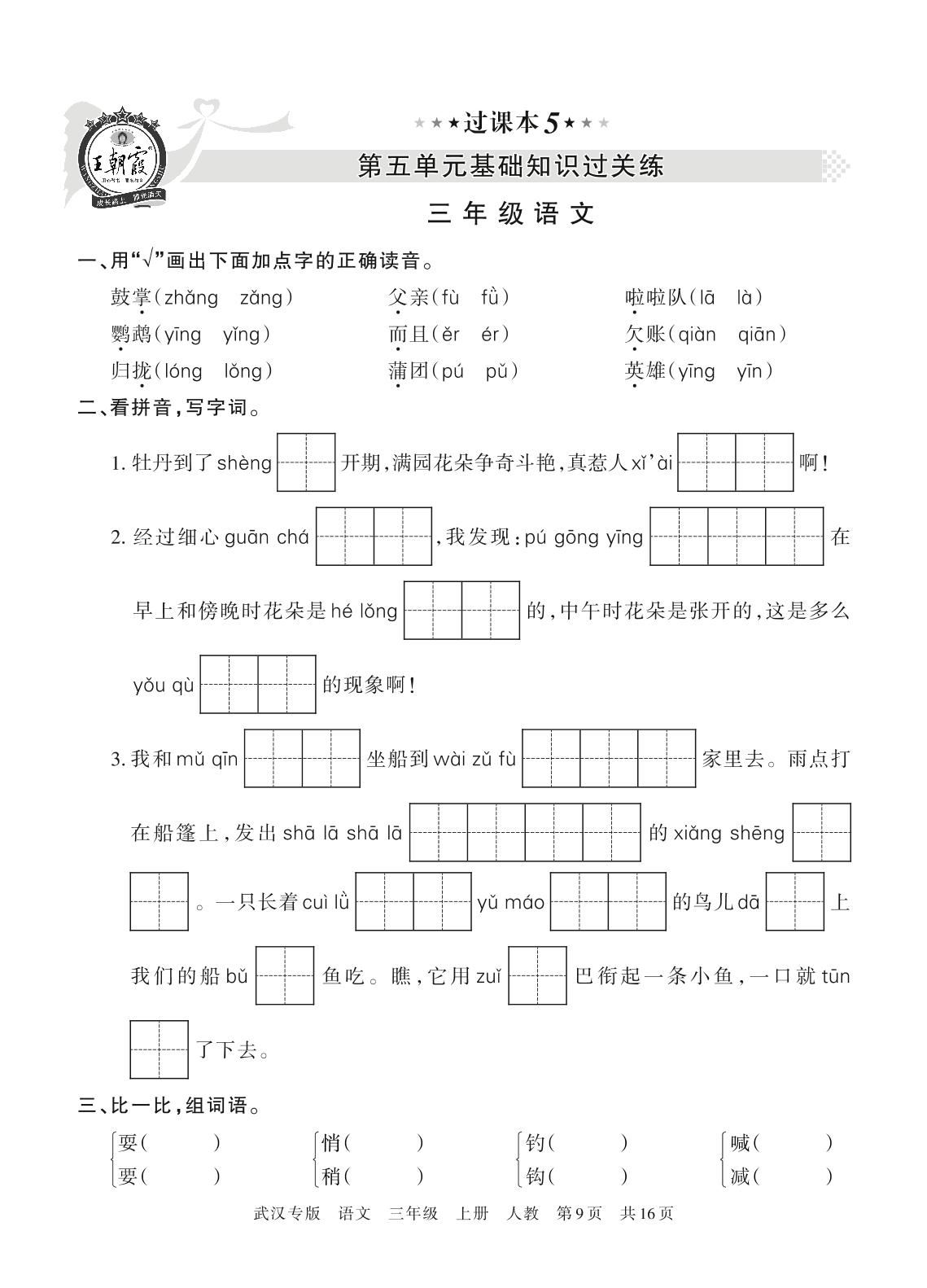 王朝霞期末过课本——第五单元基础知识过关练三年级上册语文(人教版)_R211224105338203【5】
