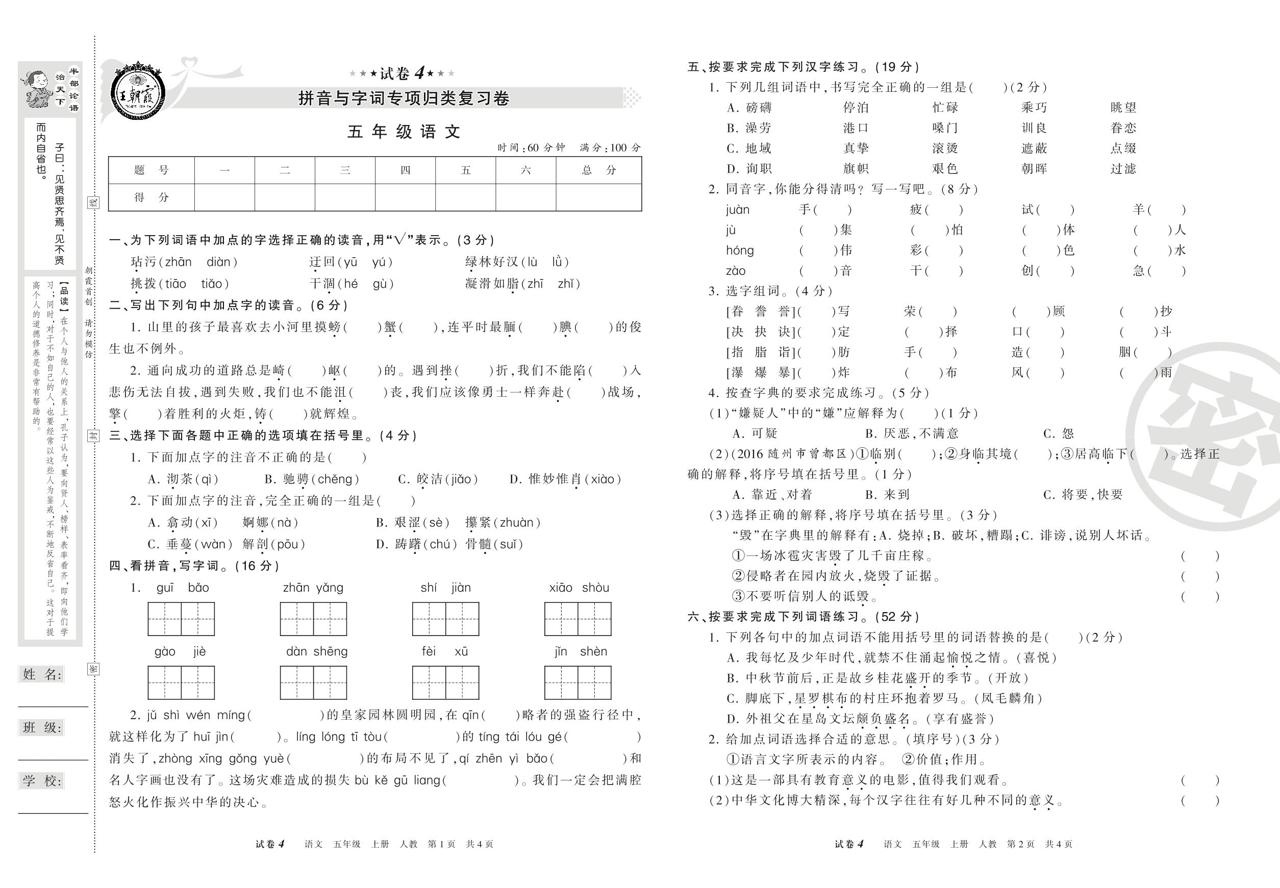 王朝霞期末专项卷五年级上册语文(人教版)_R210801215010【4】