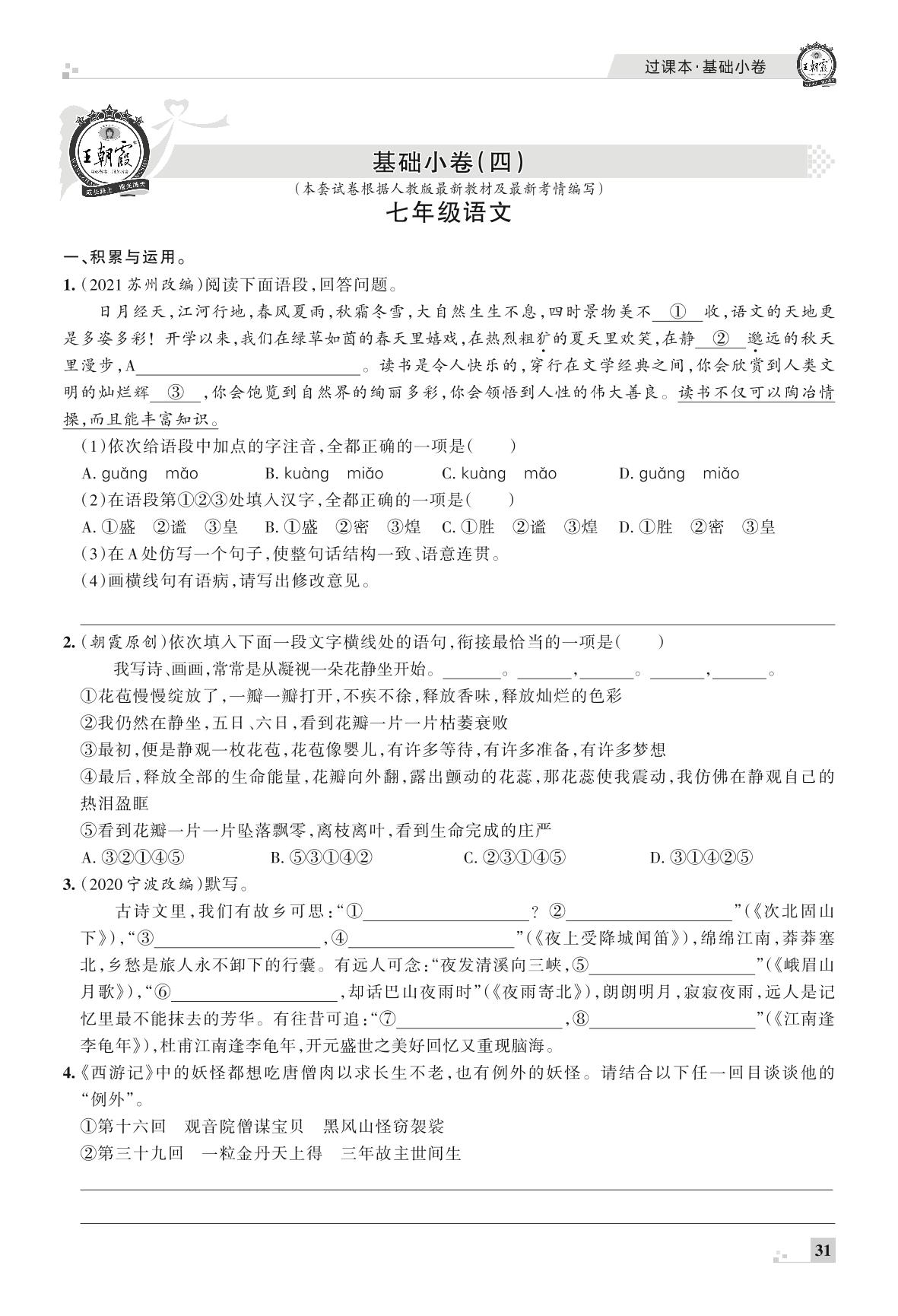王朝霞期末过课本——基础小卷(四)七年级上册语文(人教版)_R211224105902291【10】