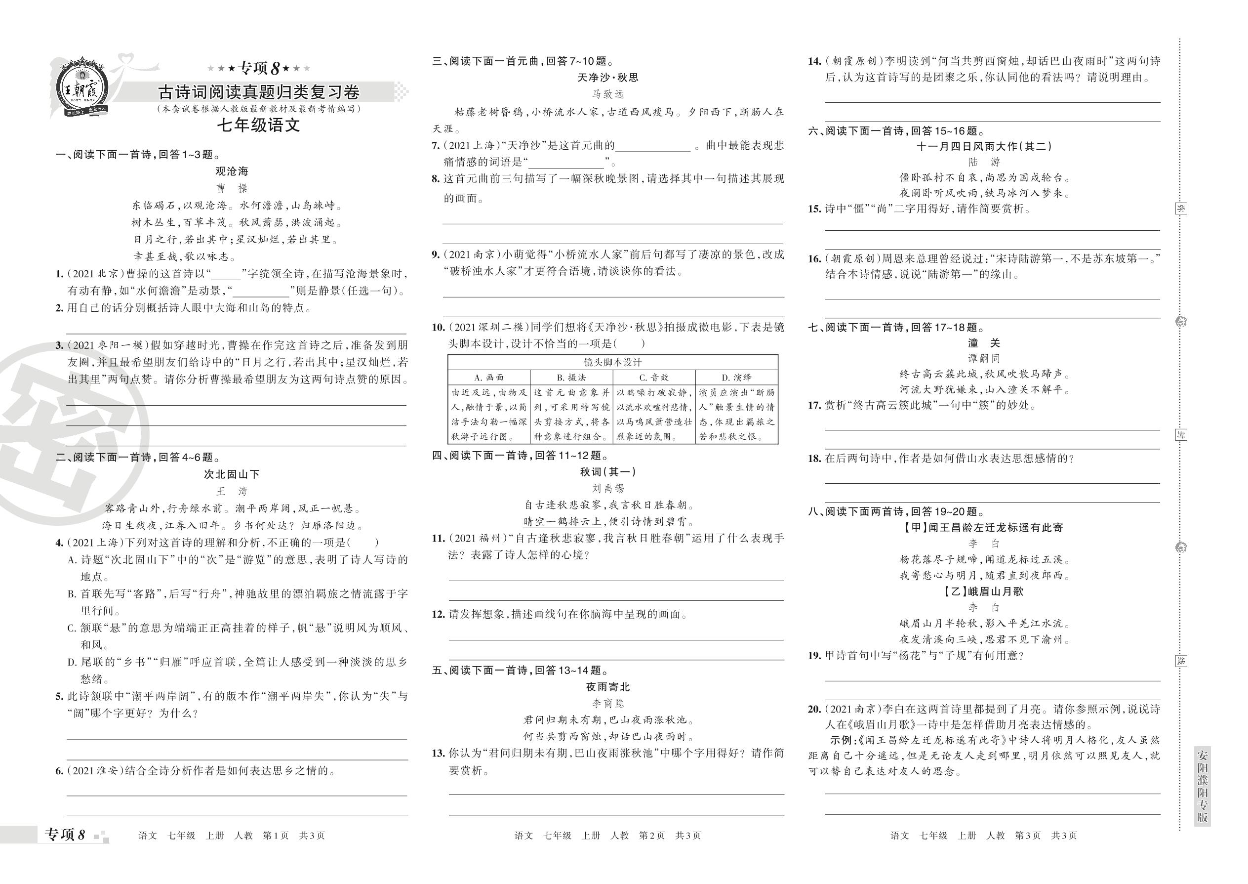王朝霞期末专项卷——古诗词阅读真题归类复习卷七年级上册语文(人教版)_R211224105902418【8】