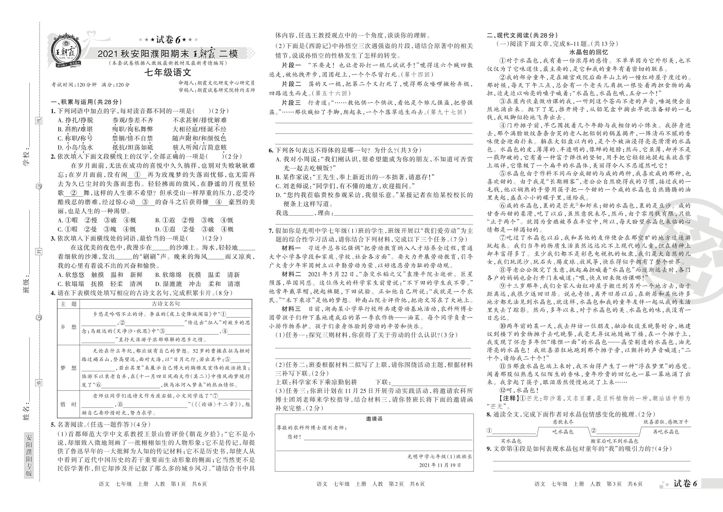 王朝霞期末模拟卷七年级上册语文(人教版)_R211224105903569【6】