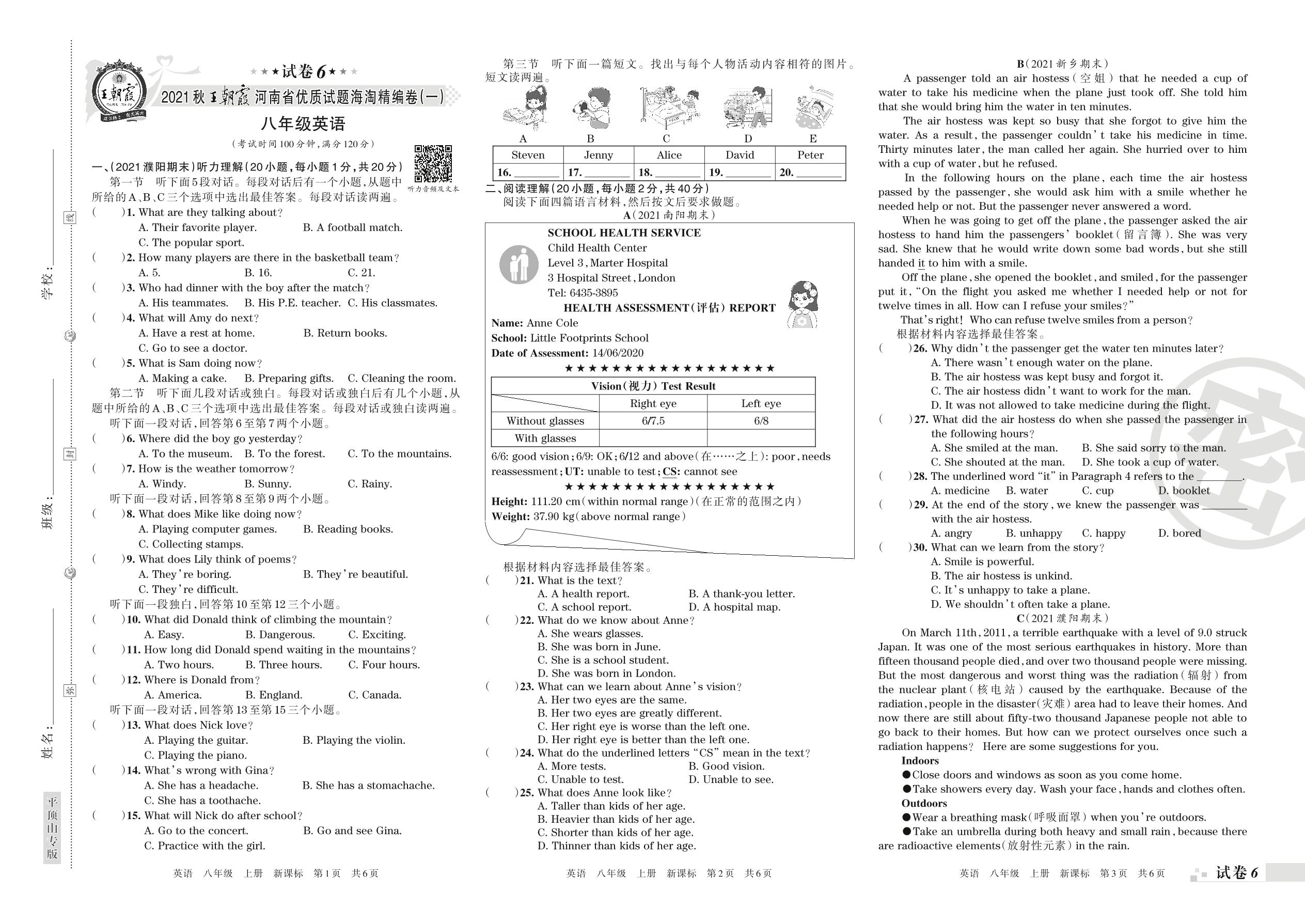 2021秋王朝霞河南省优质试题海淘精编卷(一)八年级英语(新课标)【6】