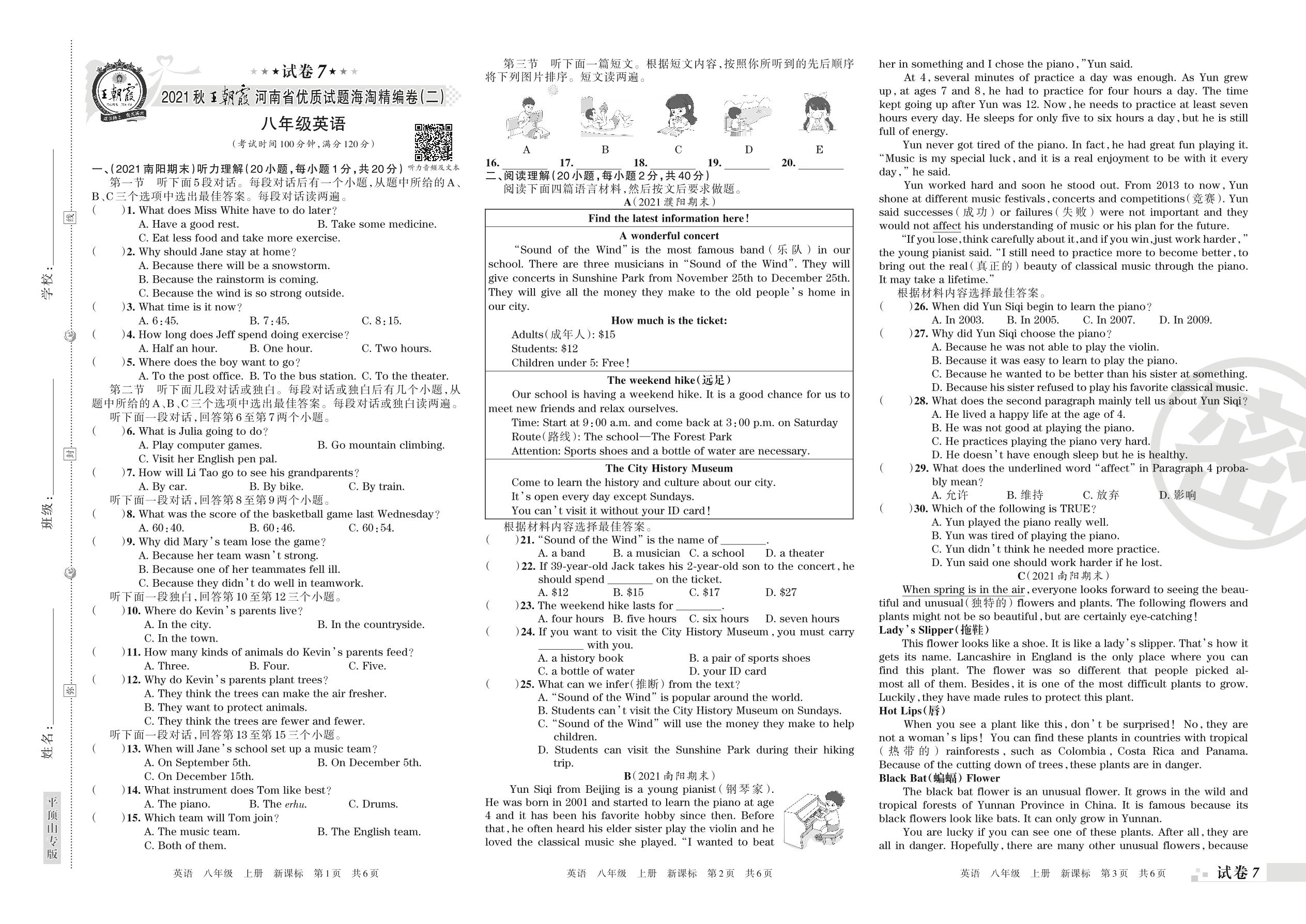 2021秋王朝霞河南省优质试题海淘精编卷(二)八年级英语(新课标)【7】