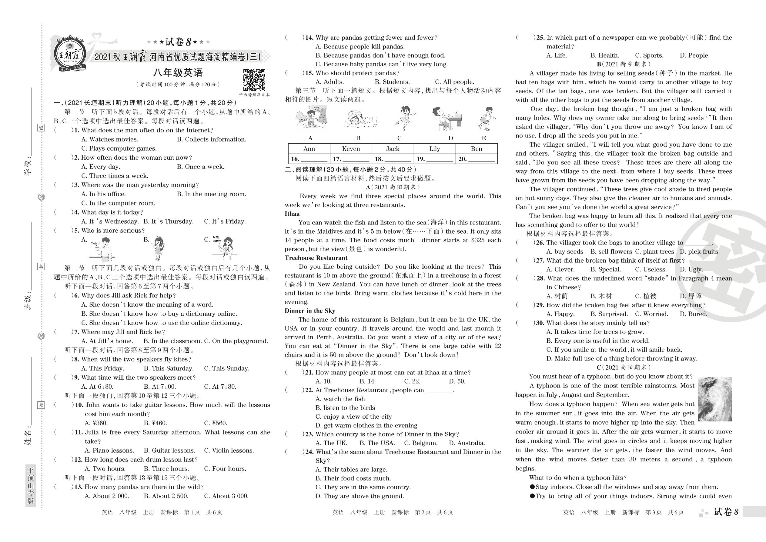 2021秋王朝霞河南省优质试题海淘精编卷(三)八年级英语(新课标)【8】