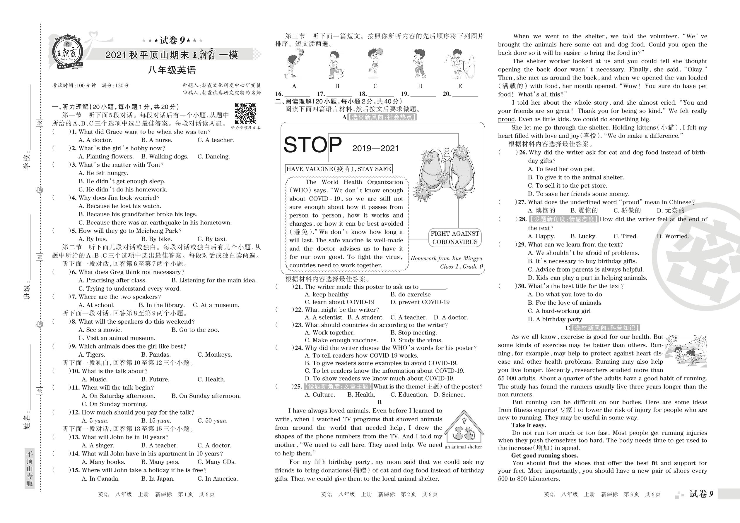 王朝霞期末模拟卷八年级上册英语(新课标)【9】
