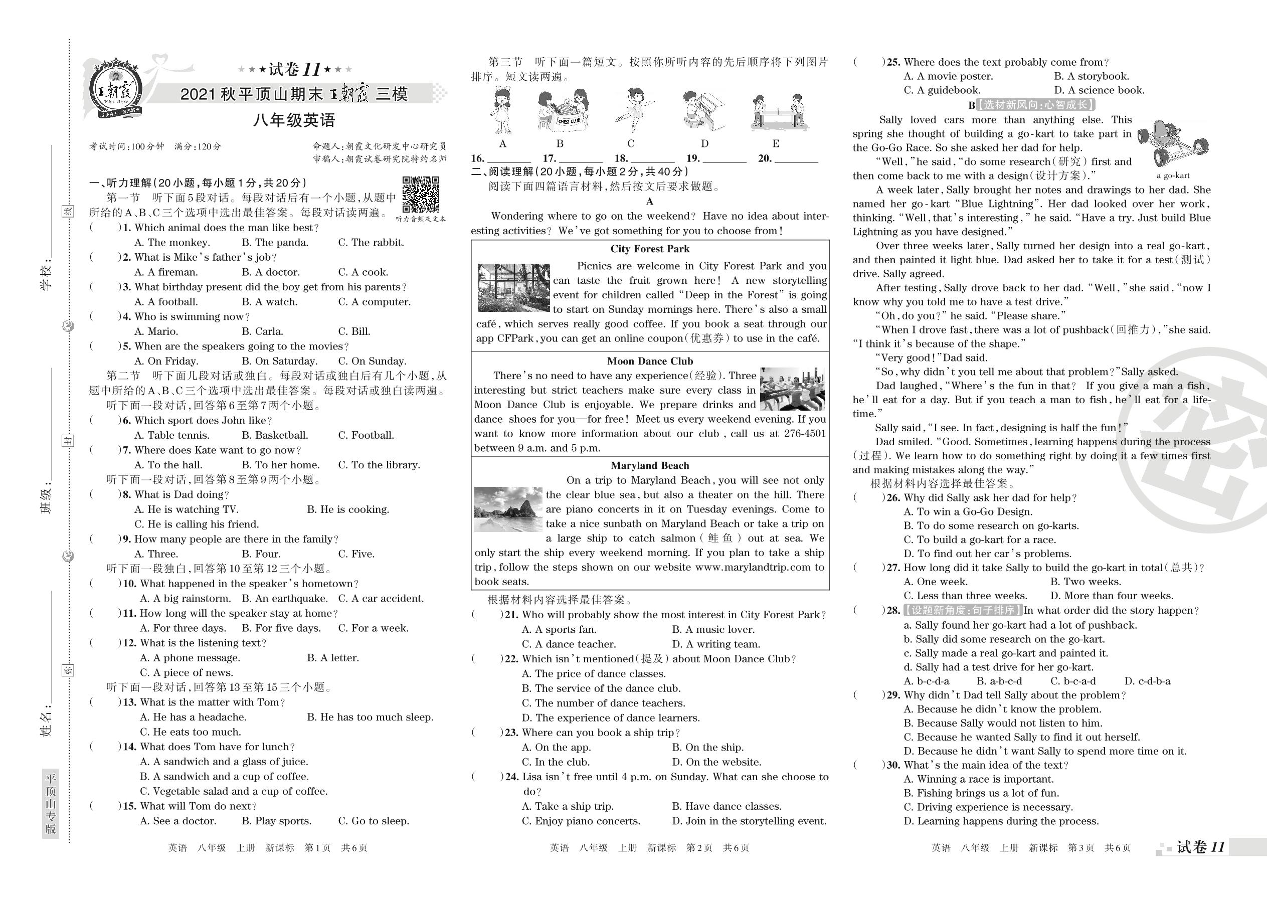 王朝霞期末模拟卷八年级上册英语(新课标)【11】