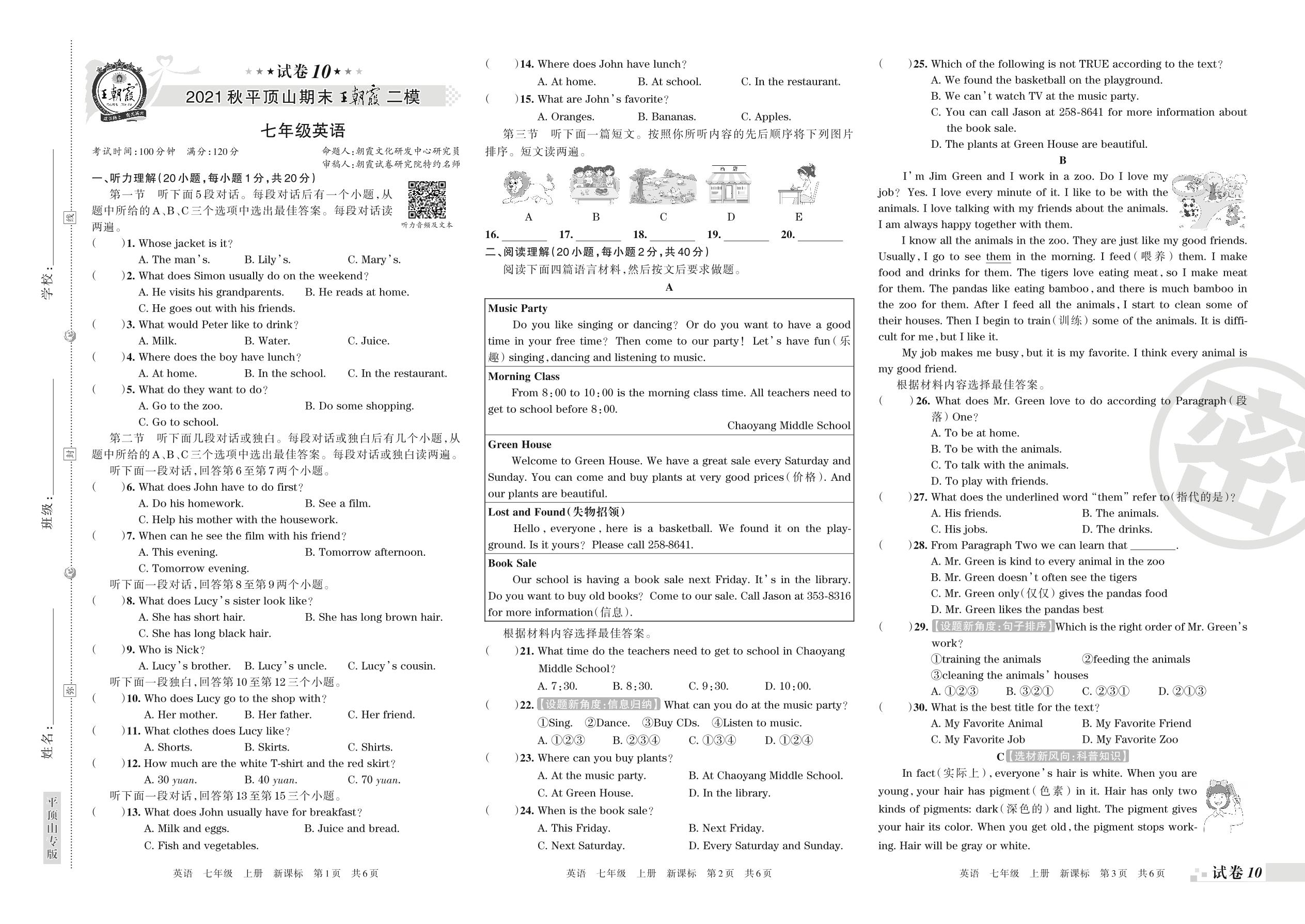 王朝霞期末模拟卷七年级上册英语(新课标)【10】