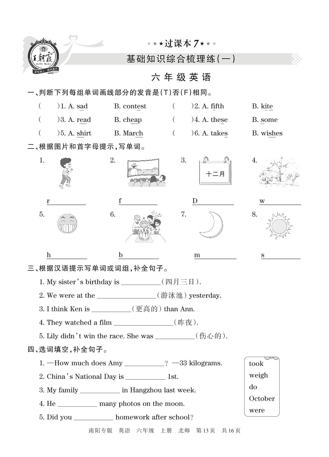 王朝霞期末过课本——基础知识综合梳理练(一)六年级上册英语(北师版)【7】