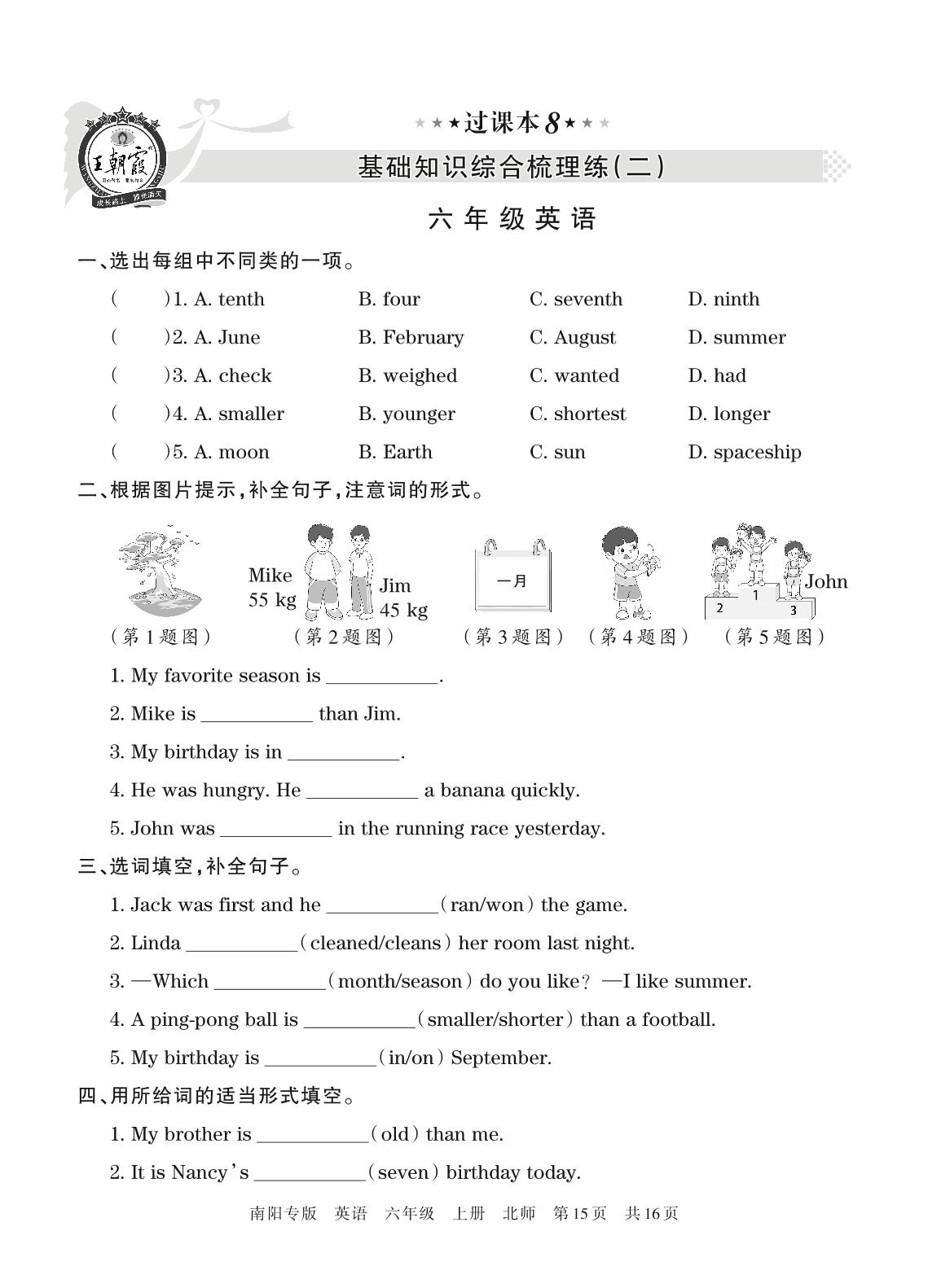 王朝霞期末过课本——基础知识综合梳理练(二)六年级上册英语(北师版)【8】