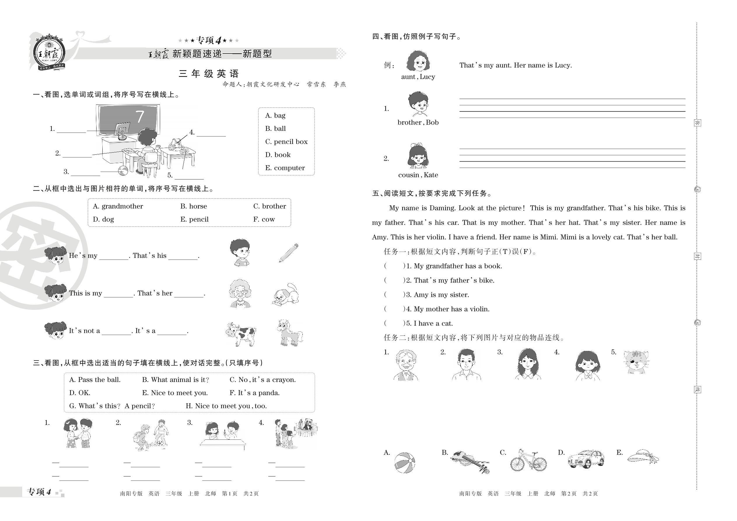 王朝霞期末专项卷——新颖题速递:新题型三年级上册英语(北师版)【4】