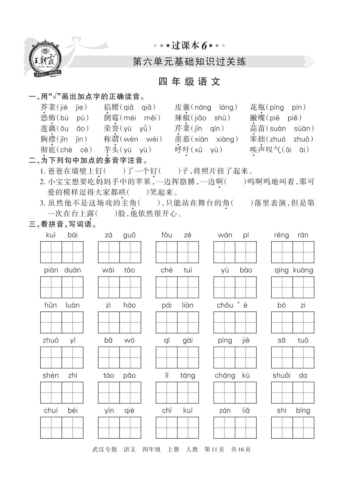 王朝霞期末过课本——第六单元基础知识过关练四年级上册语文(人教版)_R211224112012553【6】