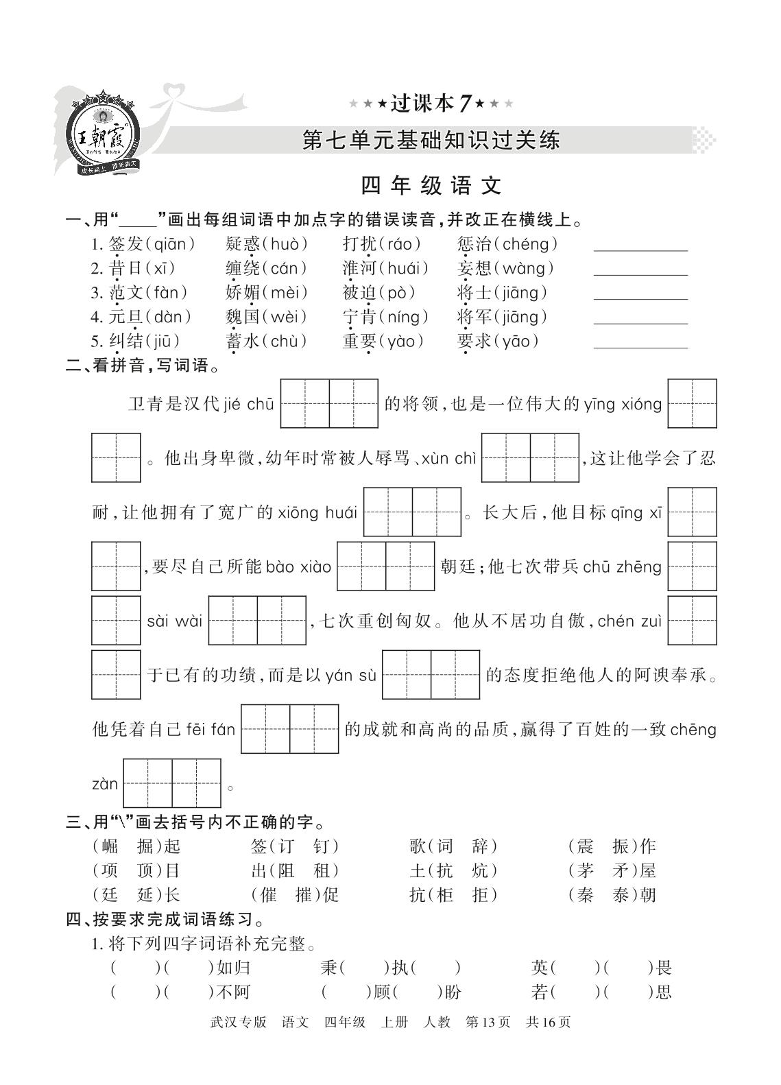 王朝霞期末过课本——第七单元基础知识过关练四年级上册语文(人教版)_R211224112012812【7】