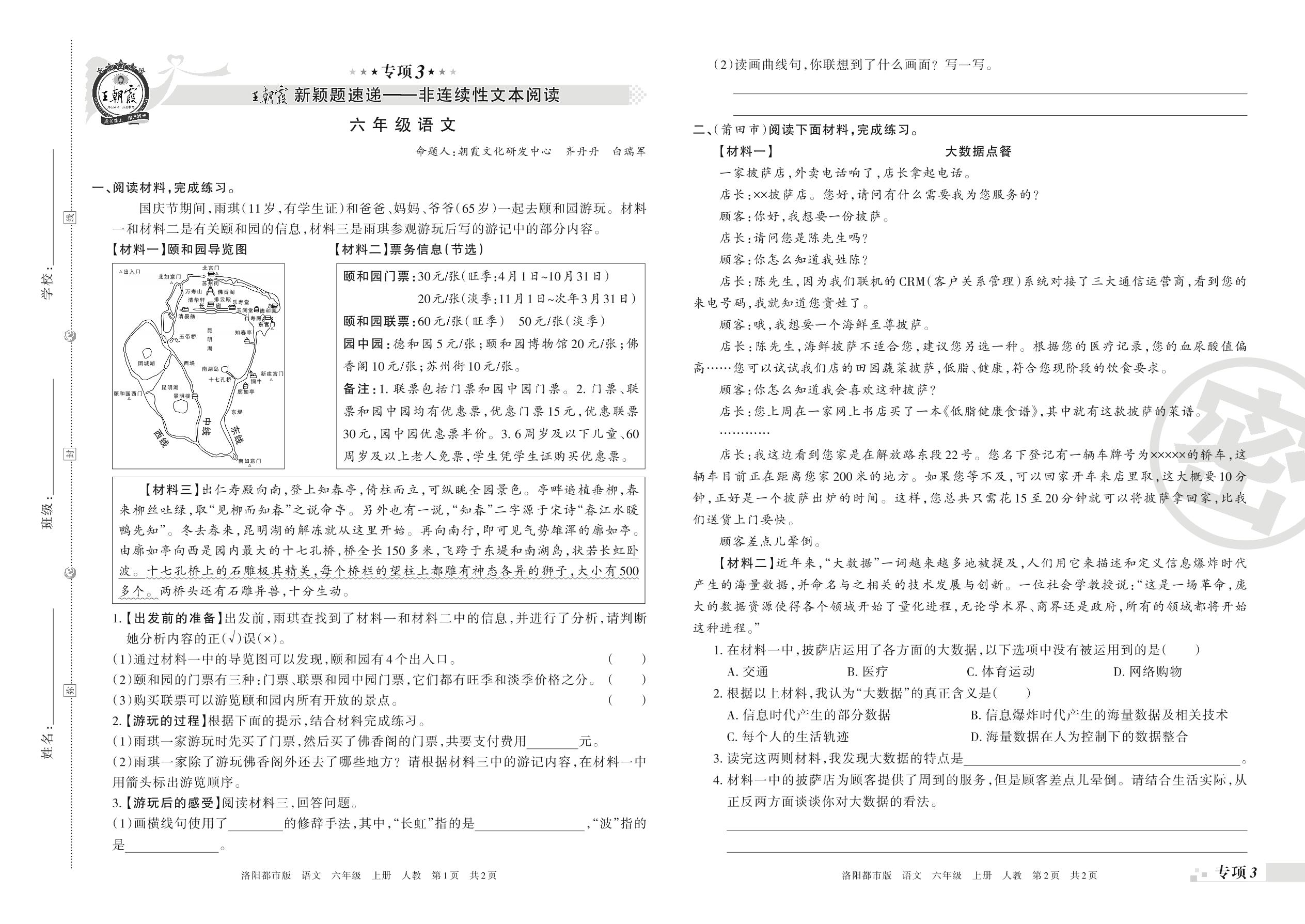 王朝霞期末专项卷——新颖题速递:非连续性文本阅读六年级上册语文(人教版)_R211224113143024【3】