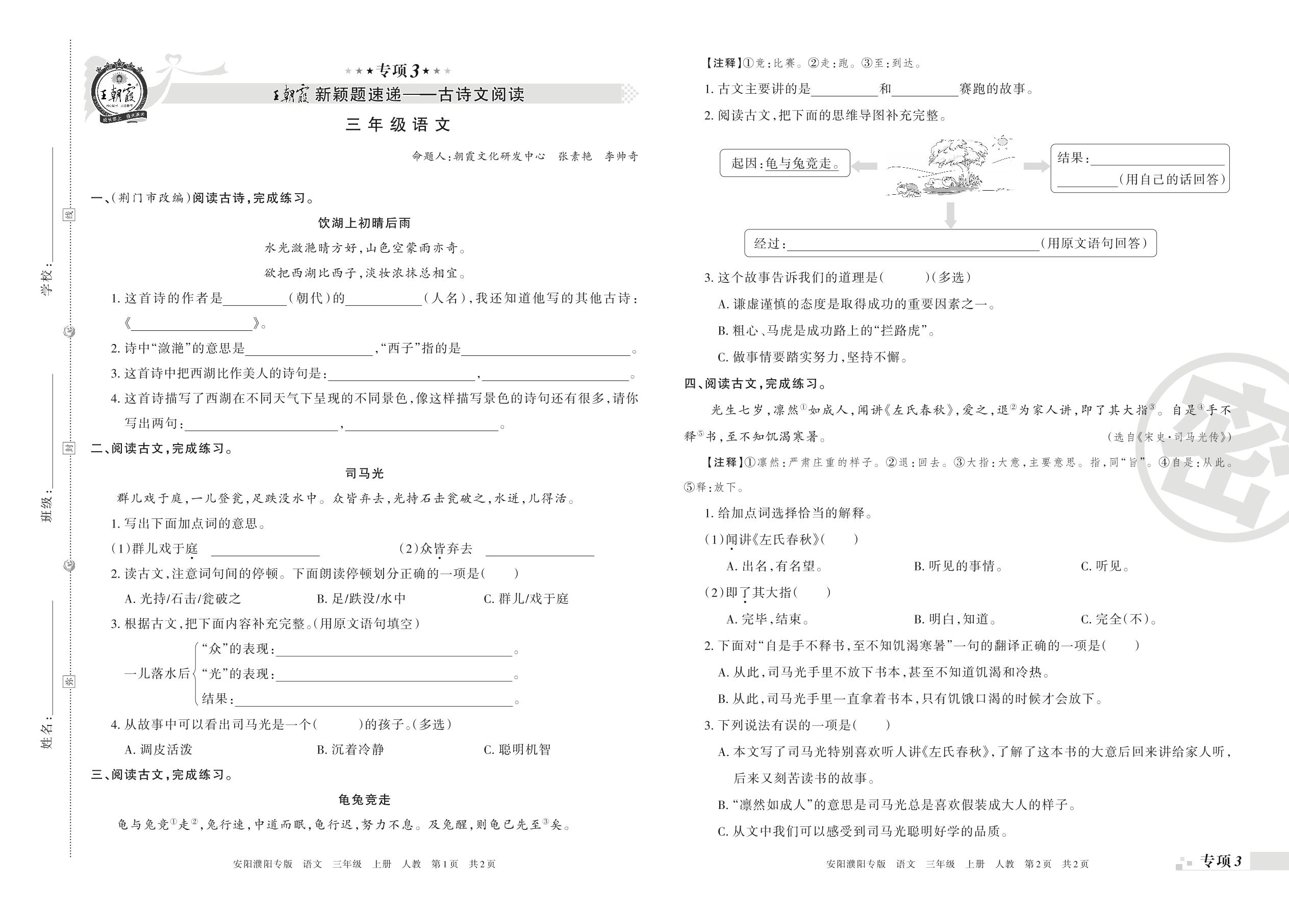王朝霞期末专项卷——新颖题速递:古诗文阅读三年级上册语文(人教版)_R211224113622445【3】