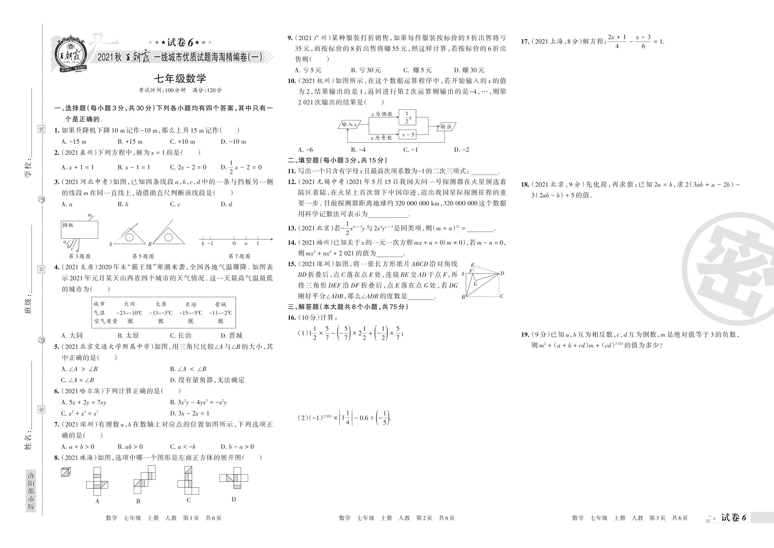 2021秋王朝霞一线城市优质试题海淘精编卷(一)七年级数学(人教版)【6】