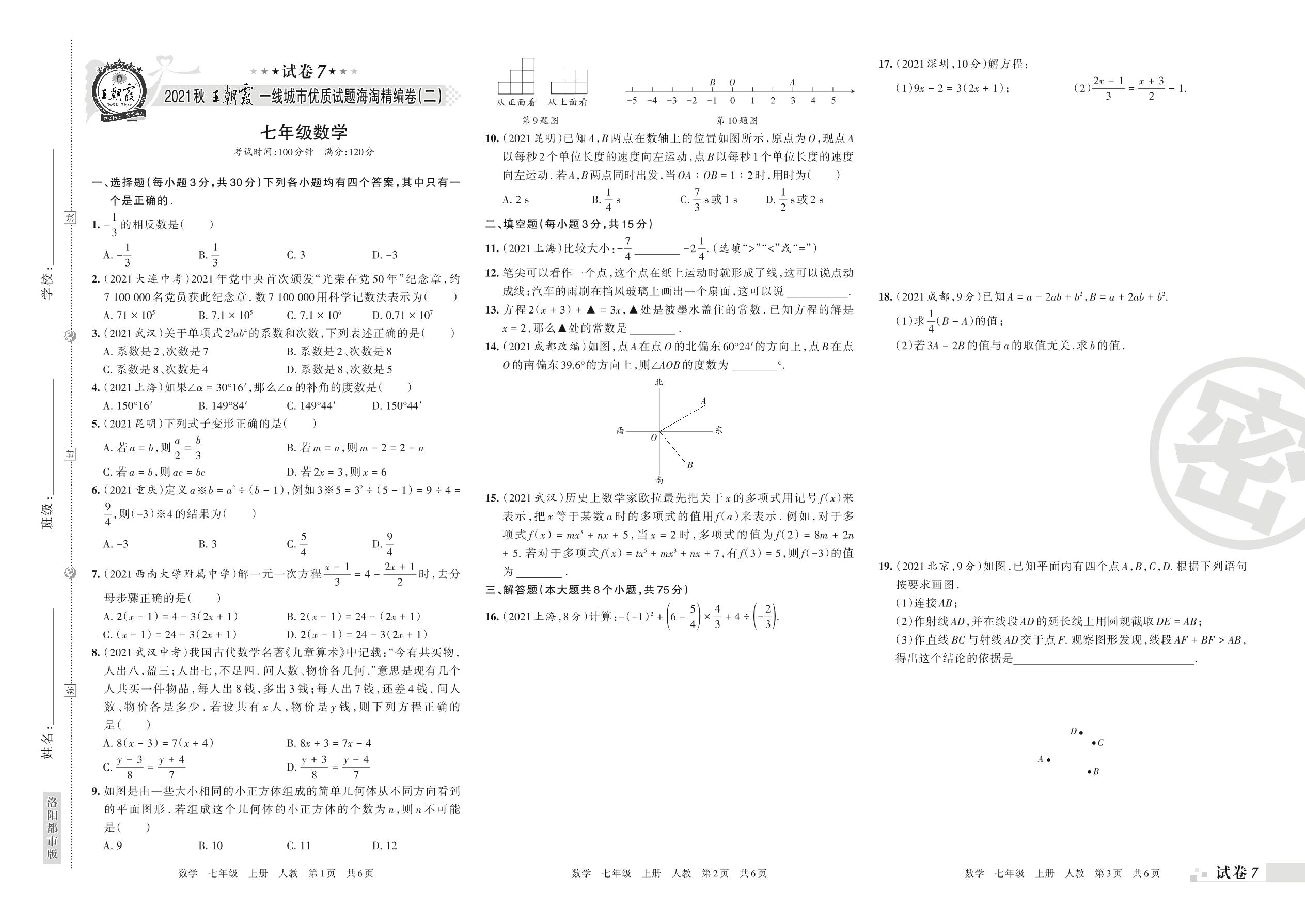 2021秋王朝霞一线城市优质试题海淘精编卷(二)七年级数学(人教版)【7】
