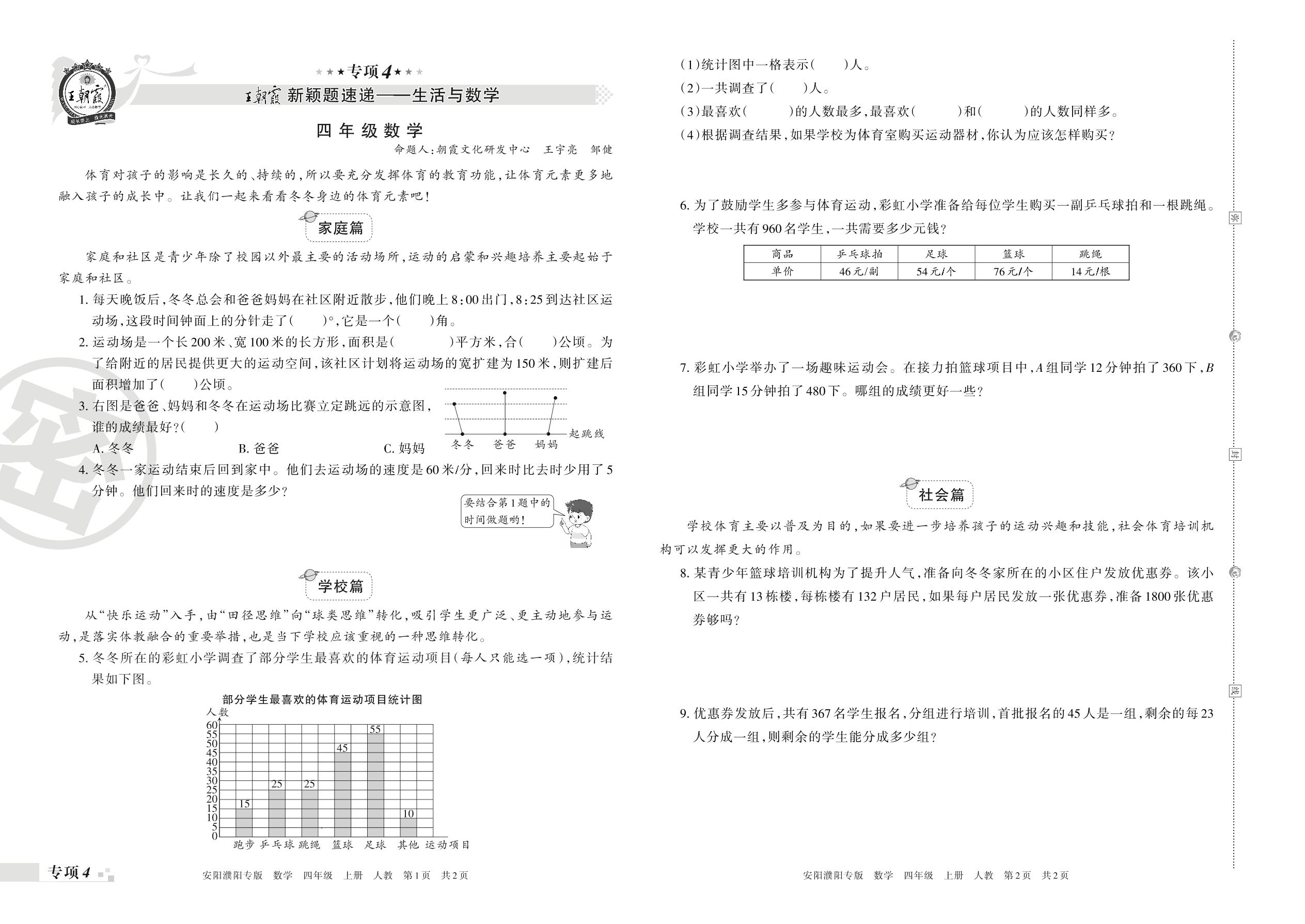 王朝霞期末专项卷——新颖题速递:生活与数学四年级上册数学(人教版)_R211224120023830【4】