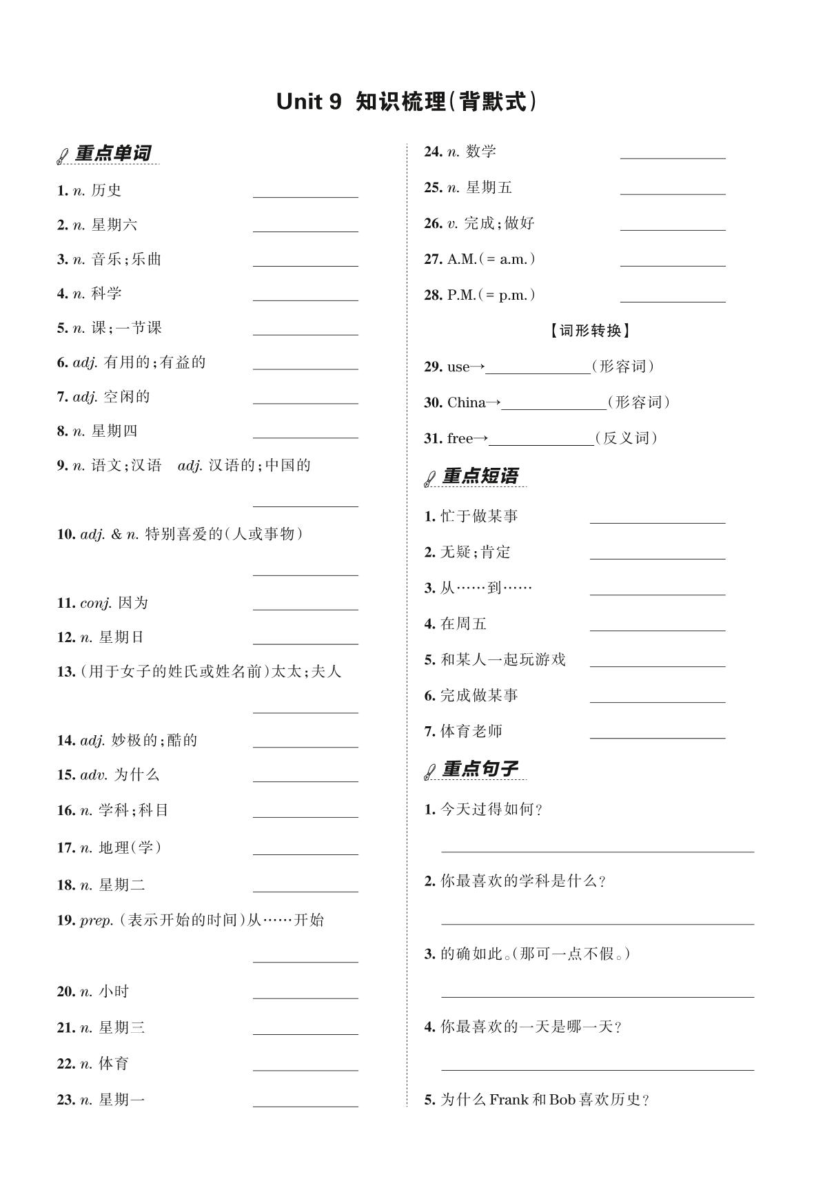 王朝霞期末过课本——Unit 9 知识梳理(背默式)七年级上册英语(人教版)_R211224120047506【10】