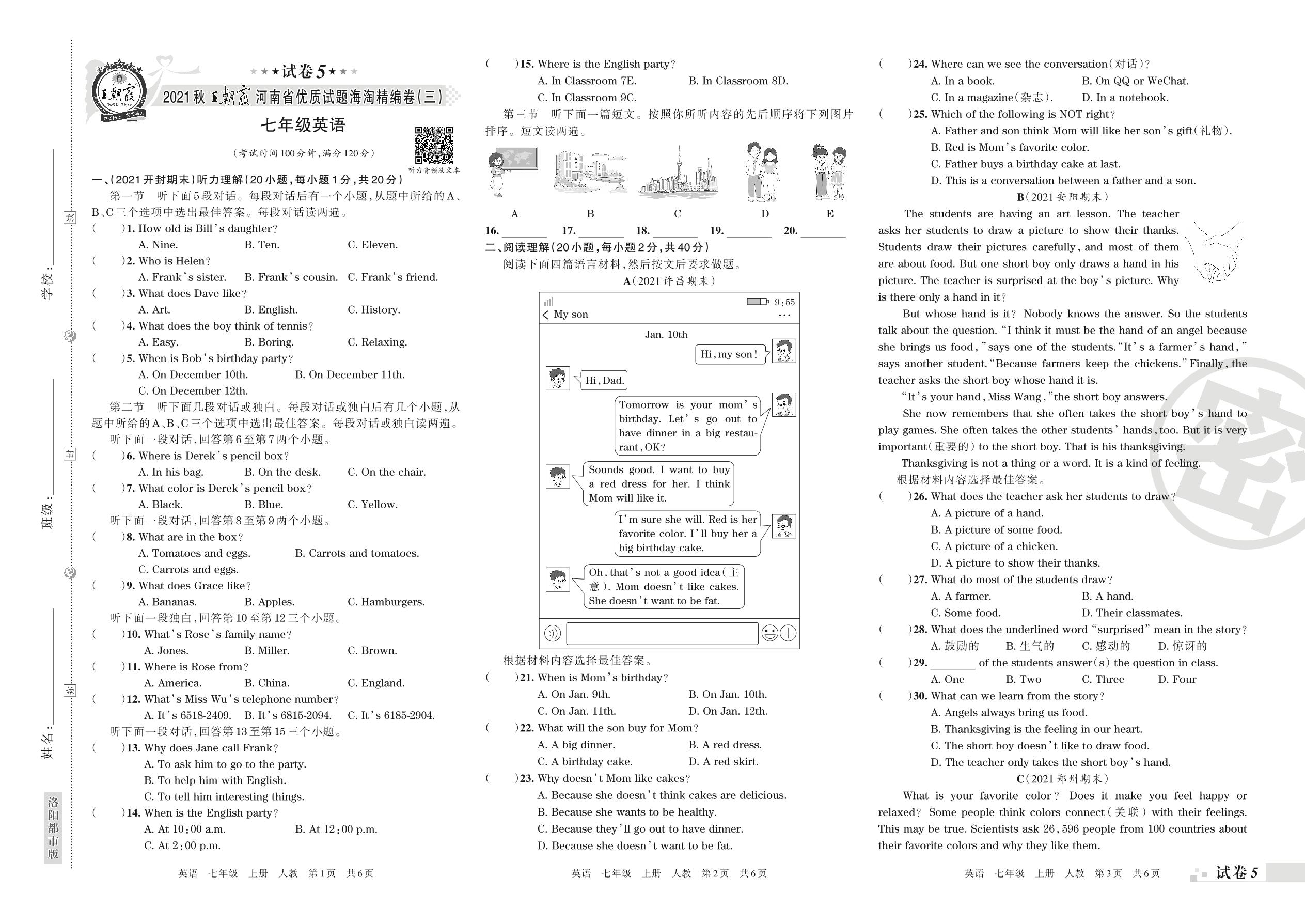 2021秋王朝霞河南省优质试题海淘精编卷(三)七年级英语(人教版)【5】