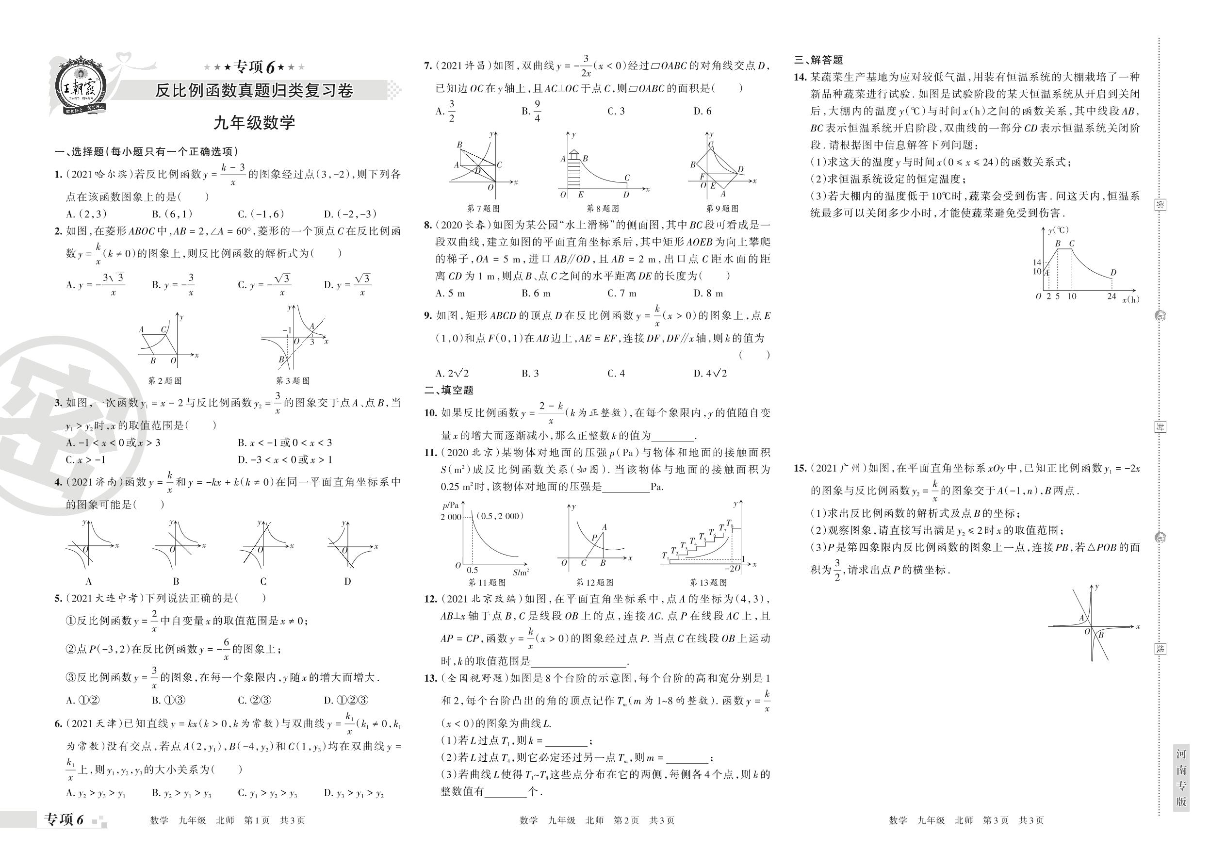 2021-2022学年第一学期王朝霞期末专项卷——反比例函数真题归类复习卷九年级数学(北师版)【6】