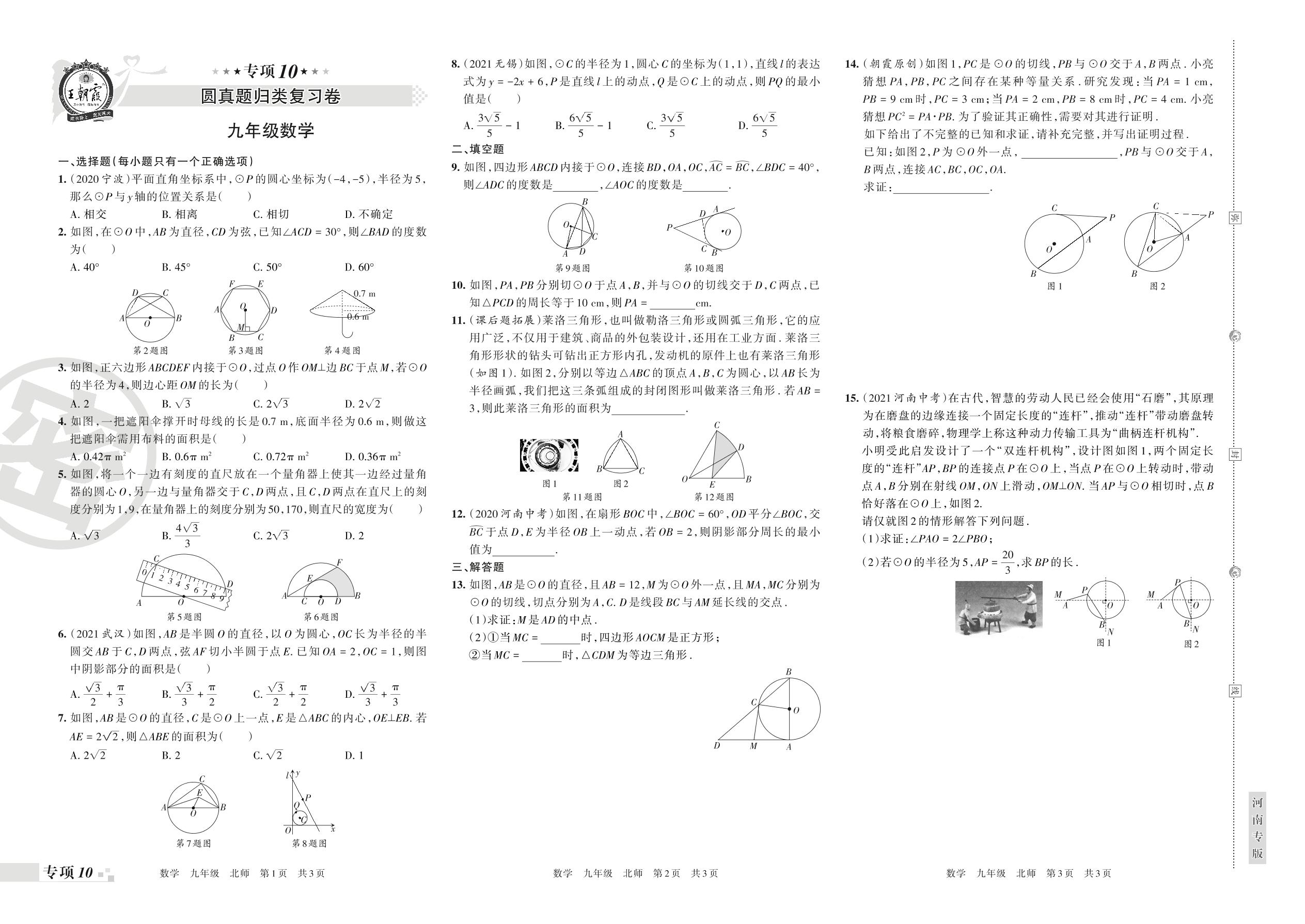 2021-2022学年第一学期王朝霞期末专项卷——圆真题归类复习卷九年级数学(北师版)【10】