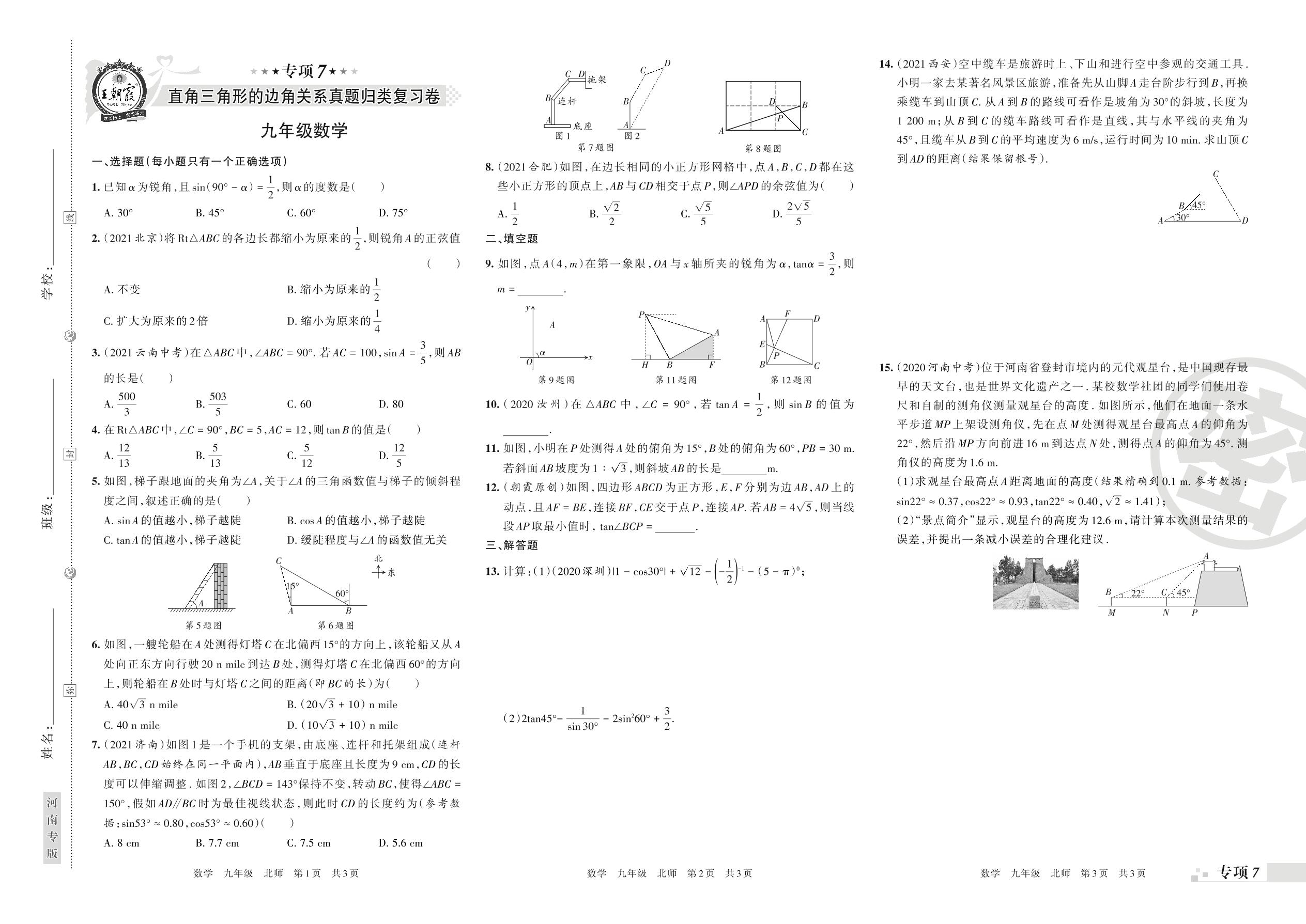 2021-2022学年第一学期王朝霞期末专项卷——直角三角形的边角关系真题归类复习卷九年级数学(北师版)【7】