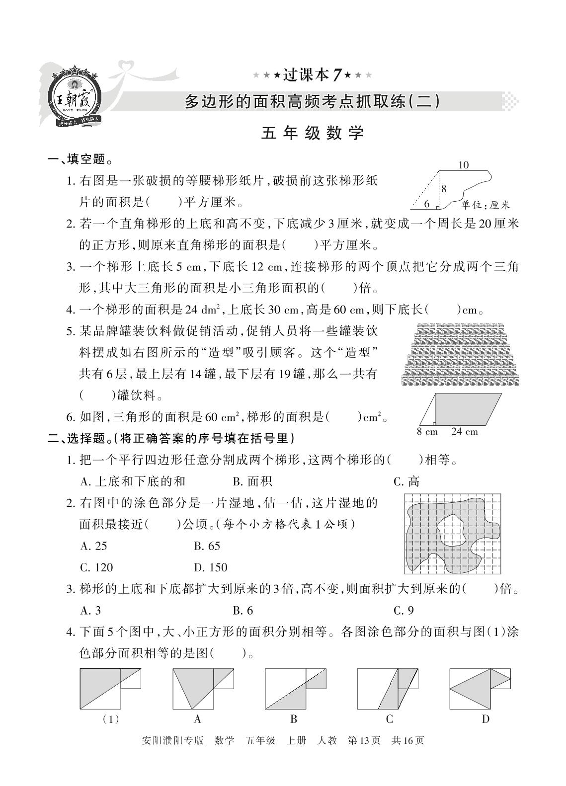 王朝霞期末过课本——多边形的面积高频考点抓取练(二)五年级上册数学(人教版)【7】