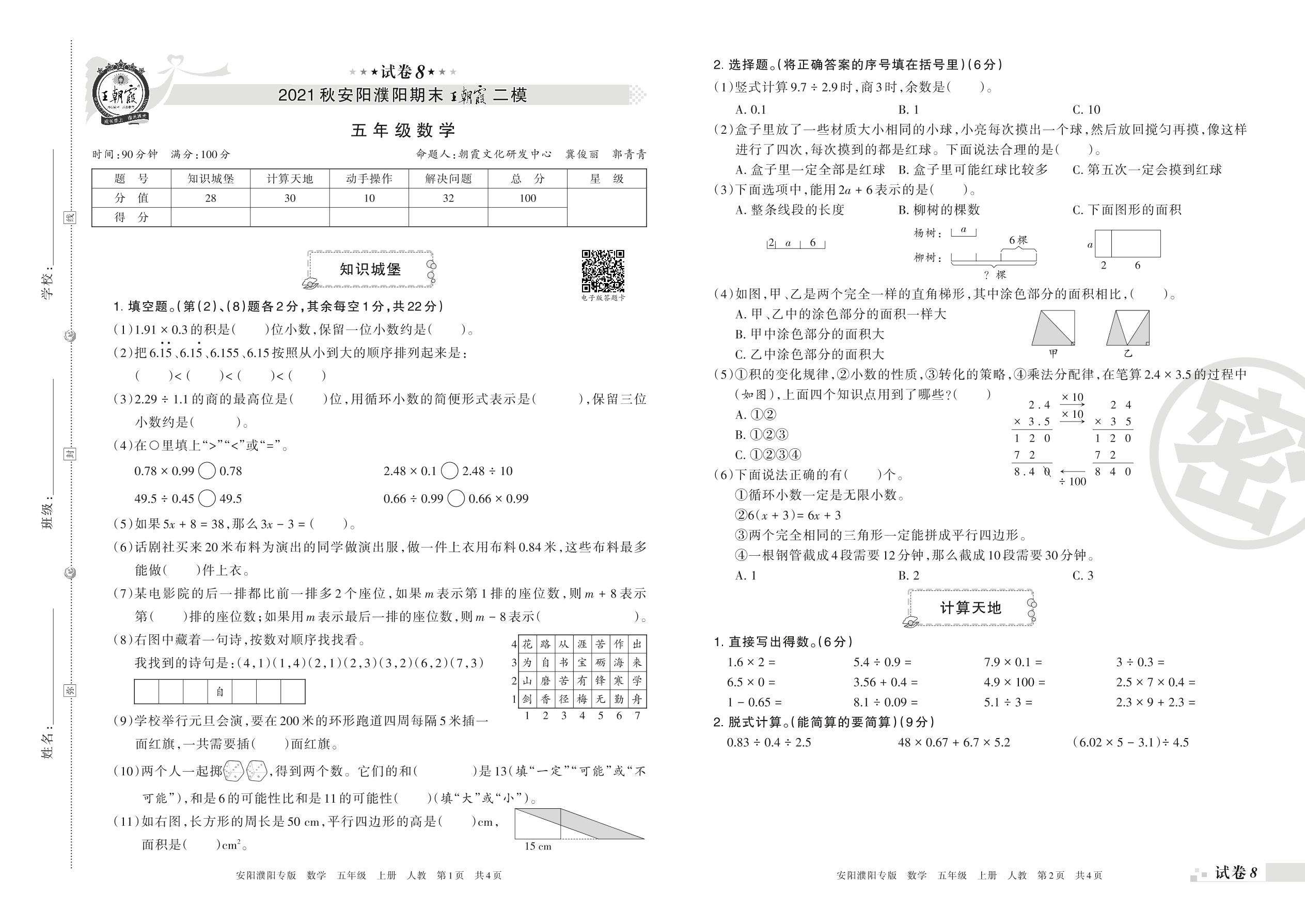 王朝霞期末模拟卷五年级上册数学(人教版)_R211224135153155【8】